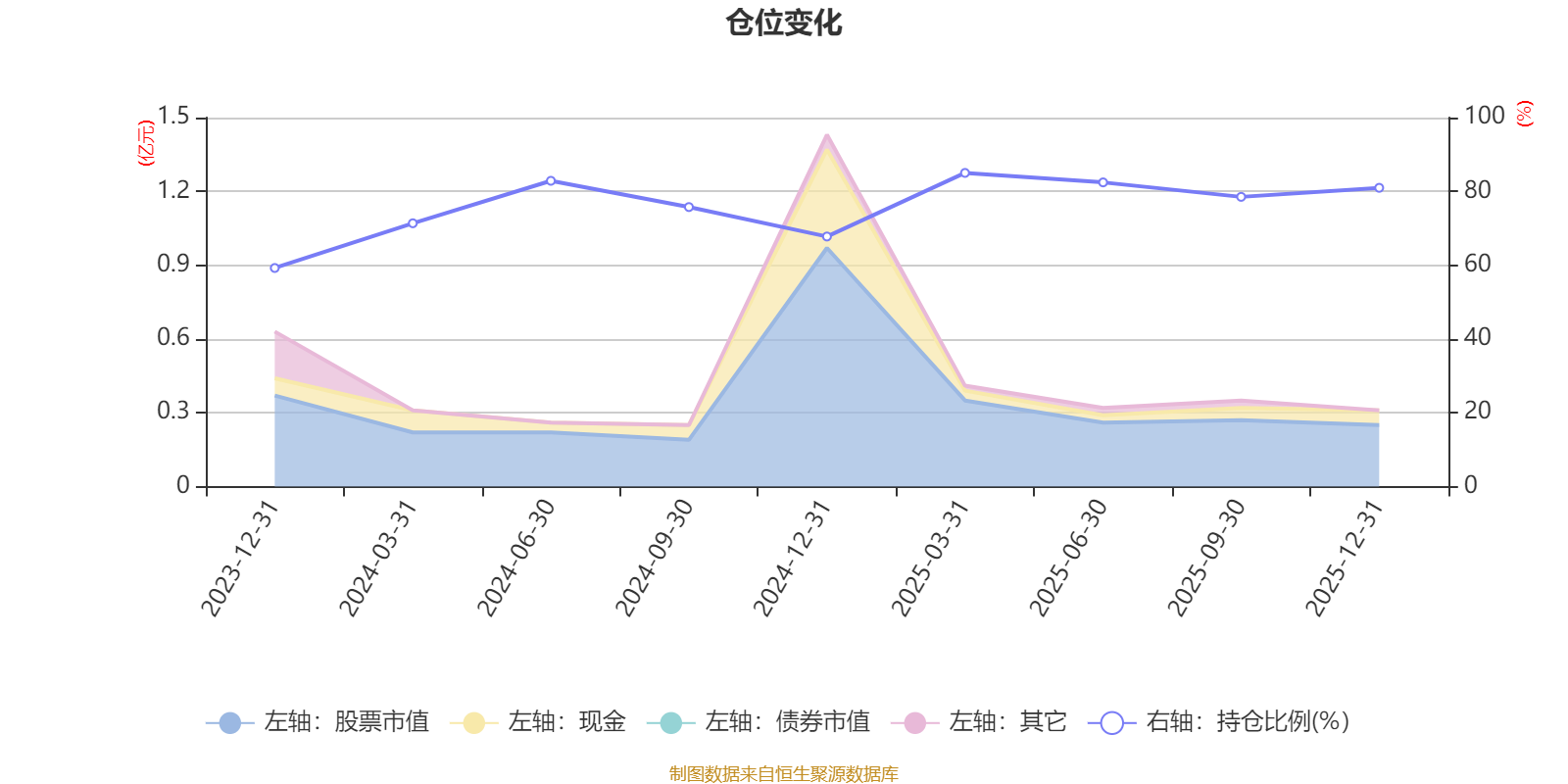 据定期报告数据统计,成立以来平均股票仓位为75.99%,同类平均为84.04%。2025年一季度末基金达到85.01%的最高仓位,2023年末最低,为59.24%。