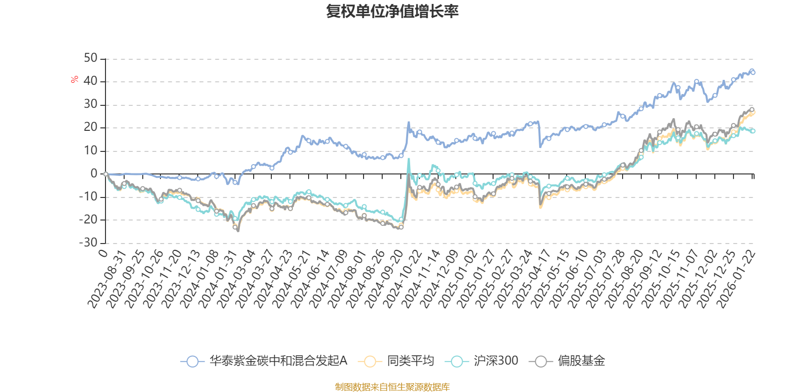 截至1月22日,华泰紫金碳中和混合发起A近三个月复权单位净值增长率为7.67%,位于同类可比基金409/689;近半年复权单位净值增长率为13.31%,位于同类可比基金519/689;近一年复权单位净值增长率为23.26%,位于同类可比基金527/673。
