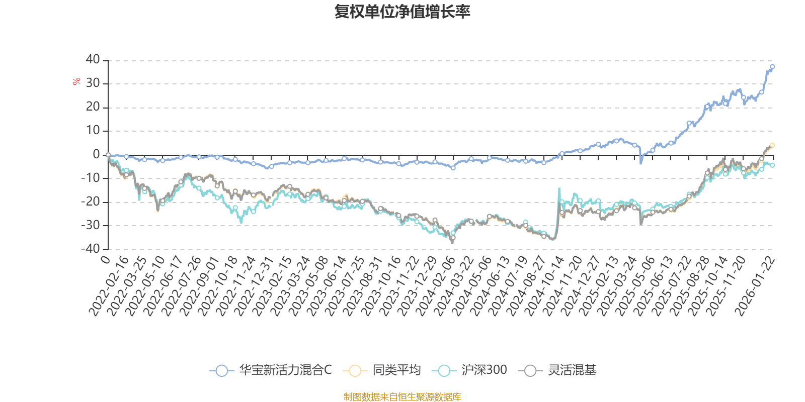 截至1月22日,华宝新活力混合C近三个月复权单位净值增长率为11.68%,位于同类可比基金459/1286;近半年复权单位净值增长率为21.03%,位于同类可比基金658/1286;近一年复权单位净值增长率为30.07%,位于同类可比基金695/1286;近三年复权单位净值增长率为42.09%,位于同类可比基金247/1286。