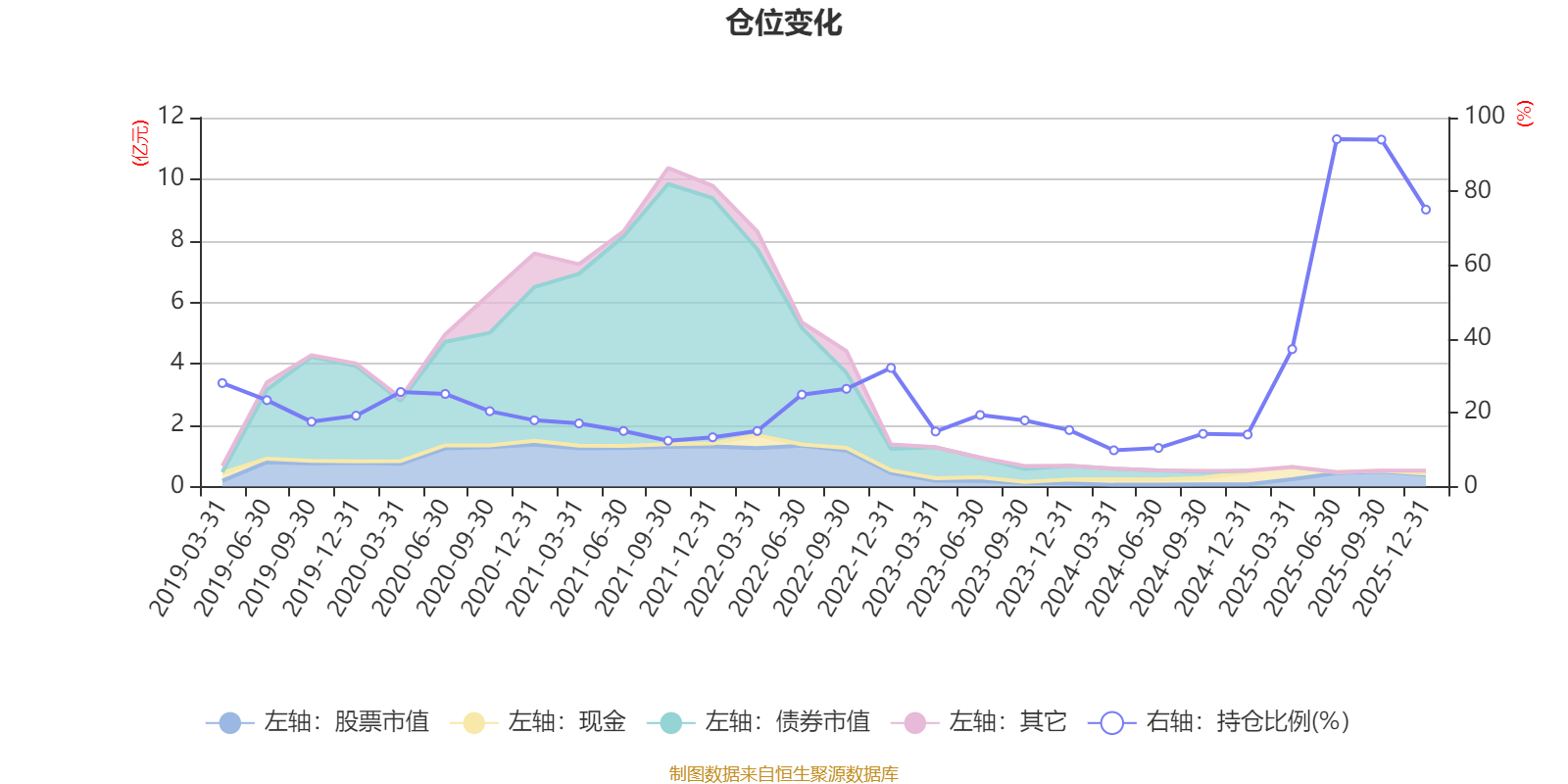 据定期报告数据统计,近三年平均股票仓位为34.73%,同类平均为72.57%。2025年上半年末基金达到94.15%的最高仓位,2024年一季度末最低,为9.84%。