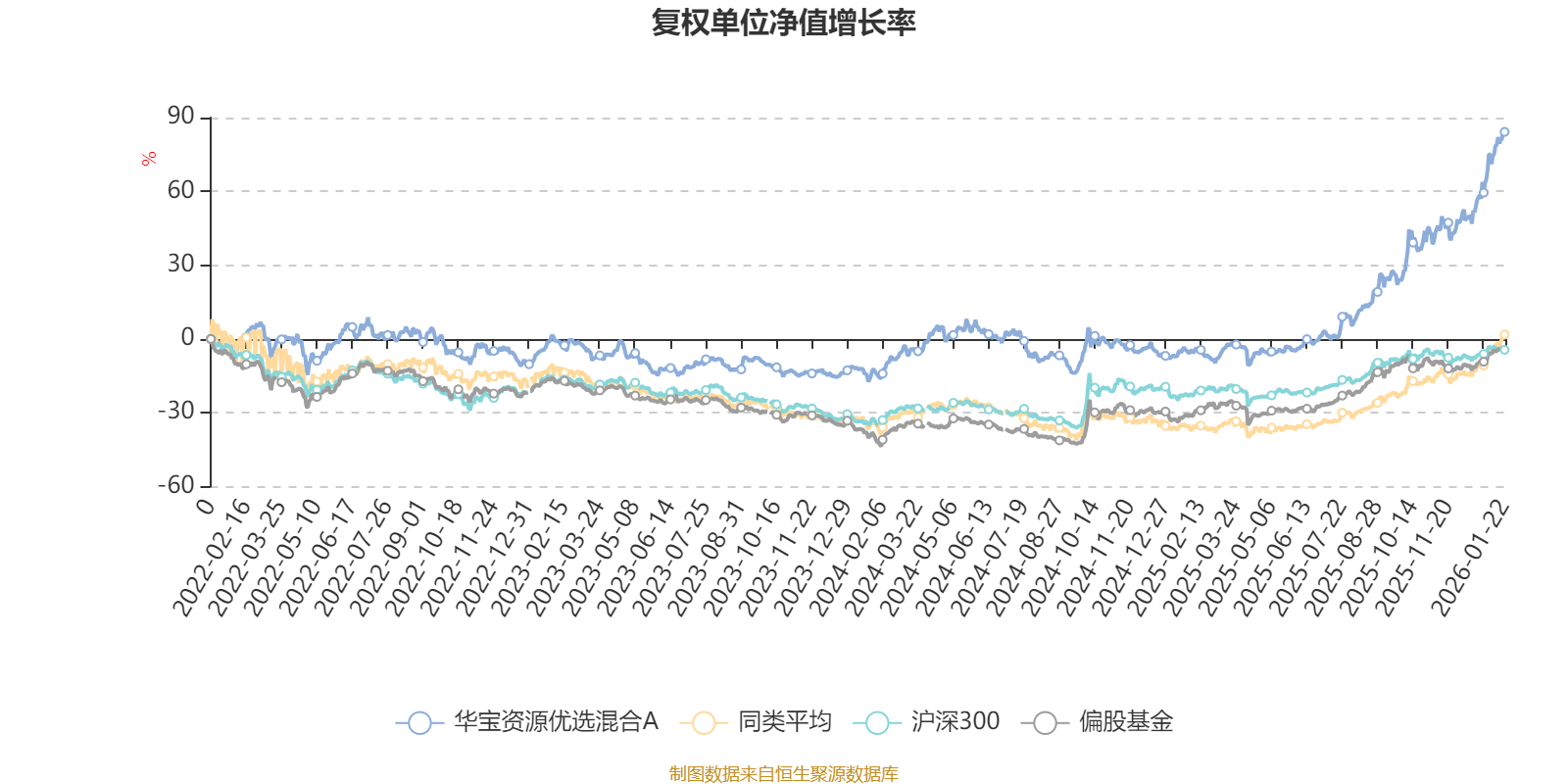 截至1月22日,华宝资源优选混合A近三个月复权单位净值增长率为35.36%,位于同类可比基金9/49;近半年复权单位净值增长率为68.91%,位于同类可比基金9/49;近一年复权单位净值增长率为94.34%,位于同类可比基金9/46;近三年复权单位净值增长率为86.03%,位于同类可比基金3/30。