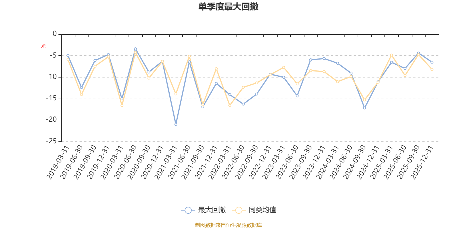 通过所选区间该基金净值增长率分位图,可以观察该基金与同类基金业绩比较情况。图为坐标原点到区间内某时点的净值增长率在同类基金中的分位数。