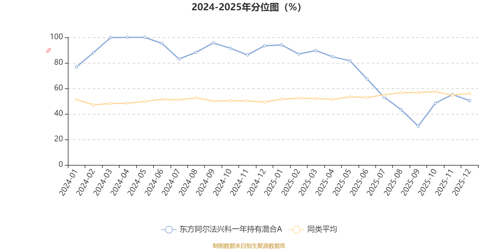 通过所选区间该基金净值增长率分位图,可以观察该基金与同类基金业绩比较情况。图为坐标原点到区间内某时点的净值增长率在同类基金中的分位数。