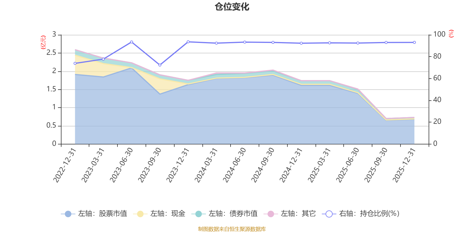 据定期报告数据统计,近三年平均股票仓位为89.93%,同类平均为85.83%。2023年末基金达到93.59%的最高仓位,2023年三季度末最低,为72.3%。