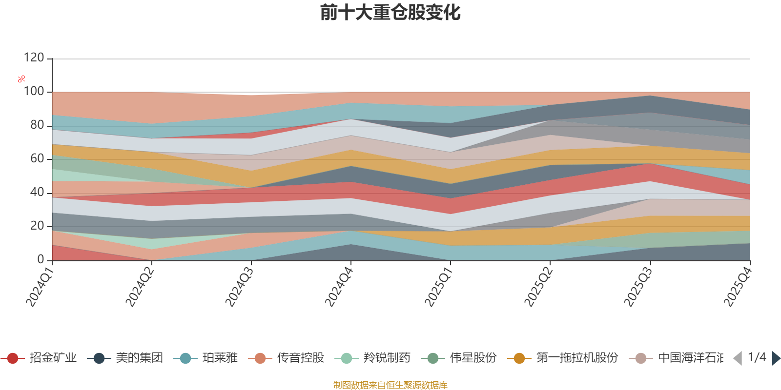 该基金持股集中度较高,近2年前十大重仓股集中度长期超过60%。截至2025年四季度末,基金十大重仓股分别是美的集团、兔宝宝、中国海洋石油、海尔智家、鱼跃医疗、第一拖拉机股份、浩洋股份、中海物业、弘亚数控、伟星股份。