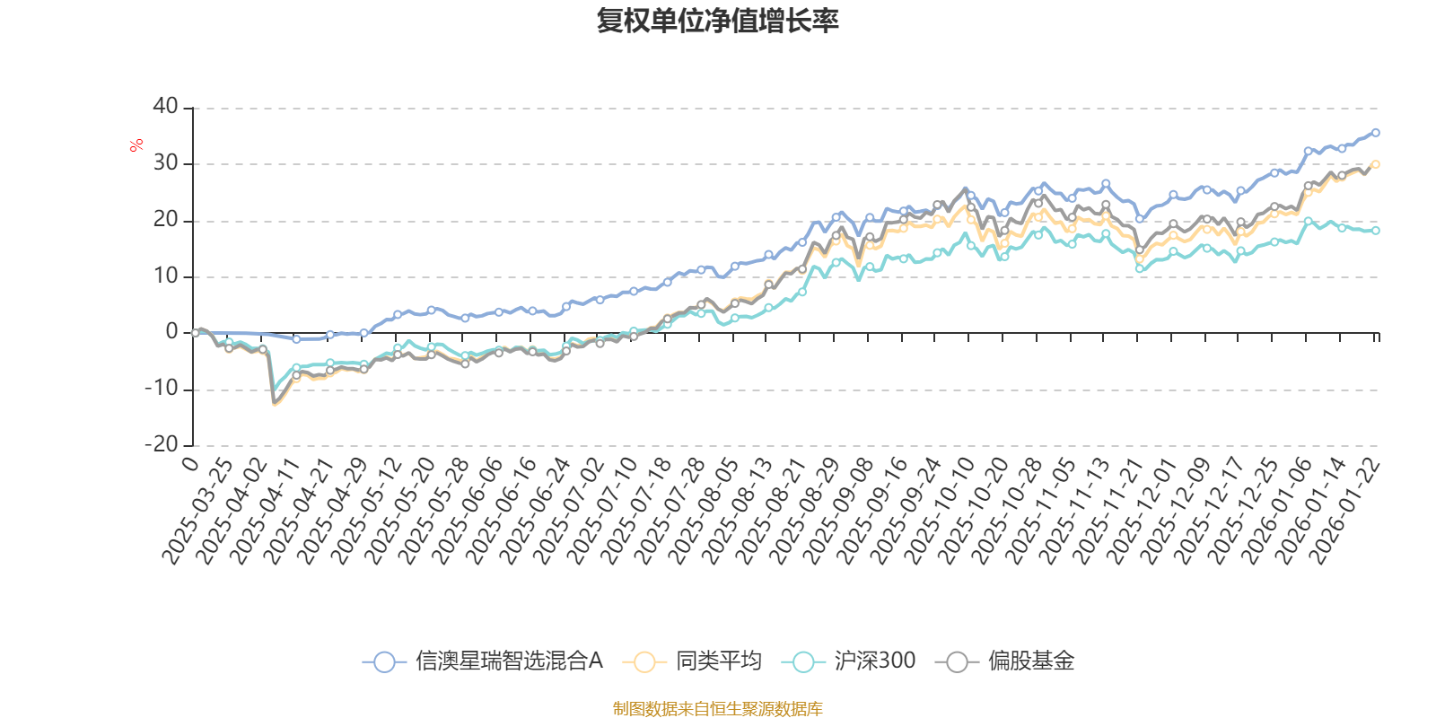 截至1月22日,信澳星瑞智选混合A近三个月复权单位净值增长率为10.28%,位于同类可比基金310/689;近半年复权单位净值增长率为22.47%,位于同类可比基金370/689。