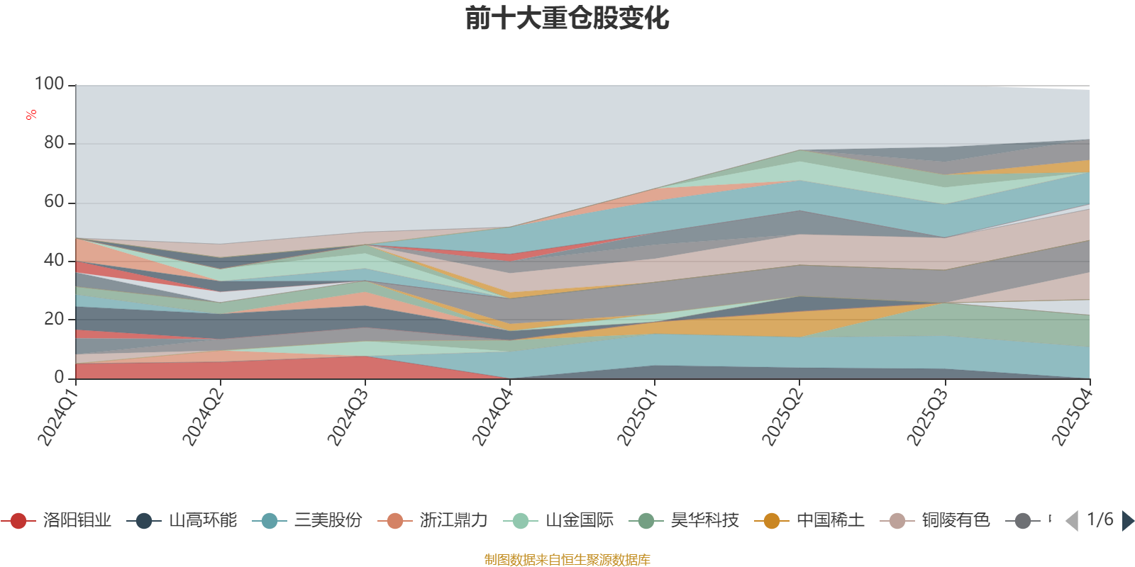 截至2025年四季度末,基金十大重仓股分别是东岳集团、巨化股份、三美股份、昊华科技、永和股份、惠城环保、广东宏大、卓越新能、华友钴业、山东黄金。