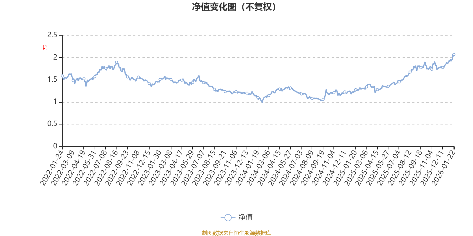 该基金属于偏股混合型基金。截至1月22日,单位净值为2.072元。基金经理是吴清宇和张明烨。