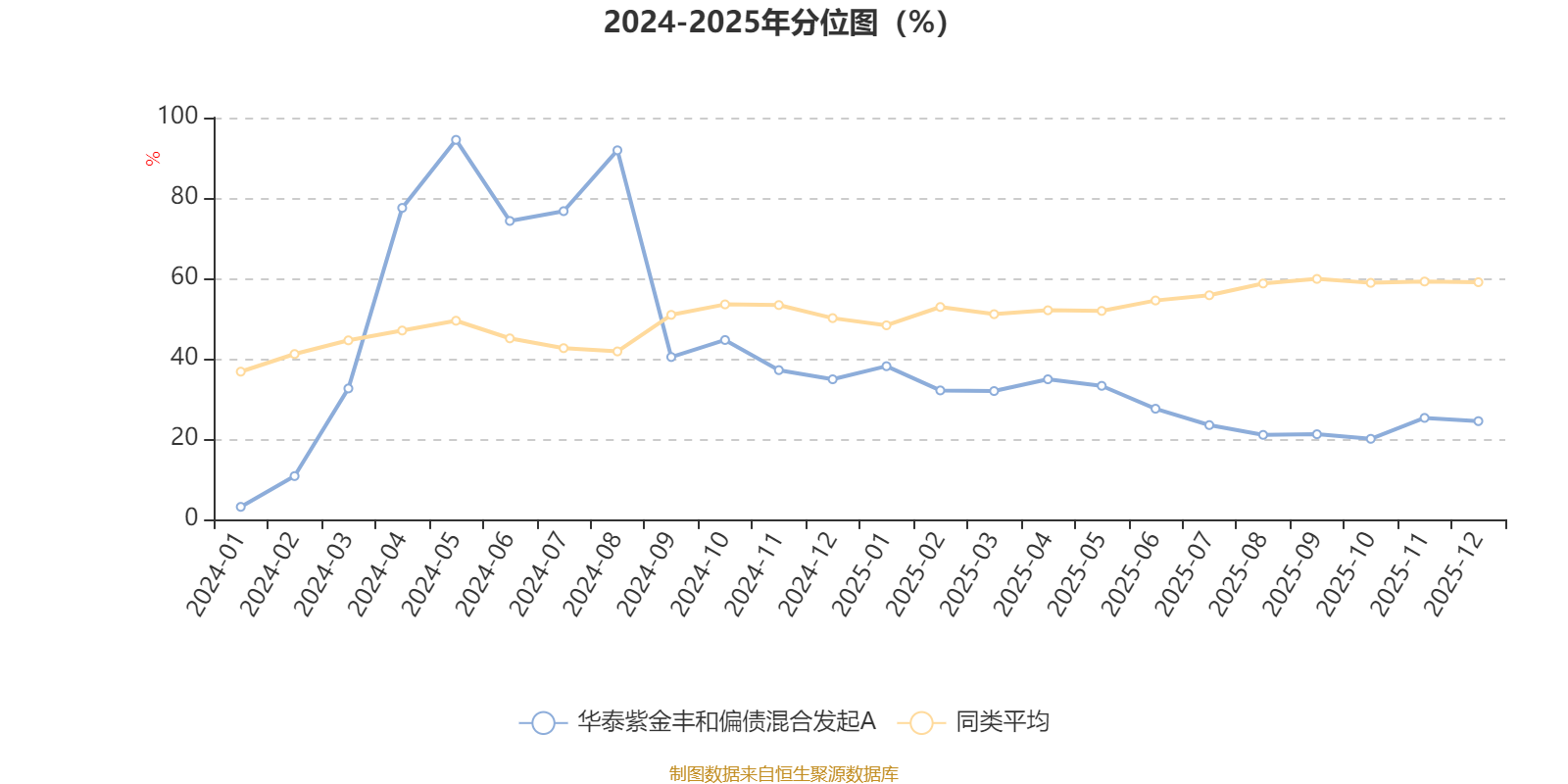 通过所选区间该基金净值增长率分位图,可以观察该基金与同类基金业绩比较情况。图为坐标原点到区间内某时点的净值增长率在同类基金中的分位数。