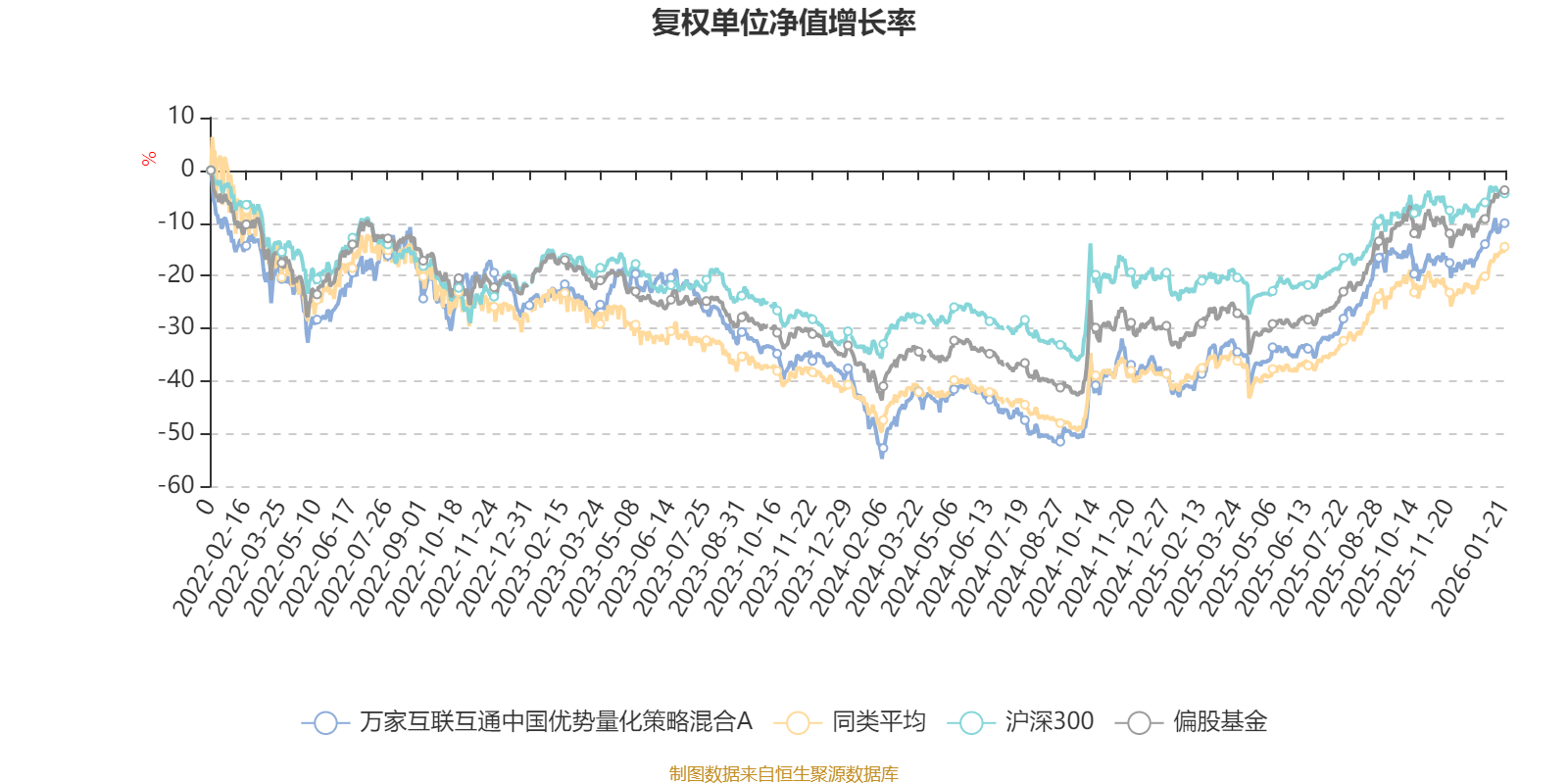 截至1月21日,万家互联互通中国优势量化策略混合A近三个月复权单位净值增长率为10.89%,位于同类可比基金206/621;近半年复权单位净值增长率为26.55%,位于同类可比基金276/621;近一年复权单位净值增长率为51.89%,位于同类可比基金170/613;近三年复权单位净值增长率为17.83%,位于同类可比基金255/535。