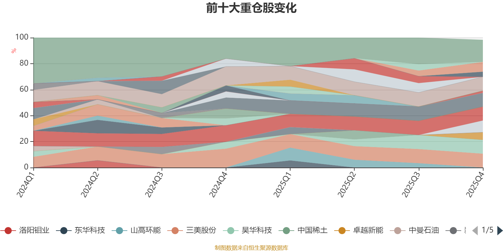 该基金持股集中度较高,近2年前十大重仓股集中度长期超过60%。截至2025年四季度末,基金十大重仓股分别是巨化股份、东岳集团、三美股份、昊华科技、永和股份、惠城环保、广东宏大、卓越新能、华友钴业、山东黄金。