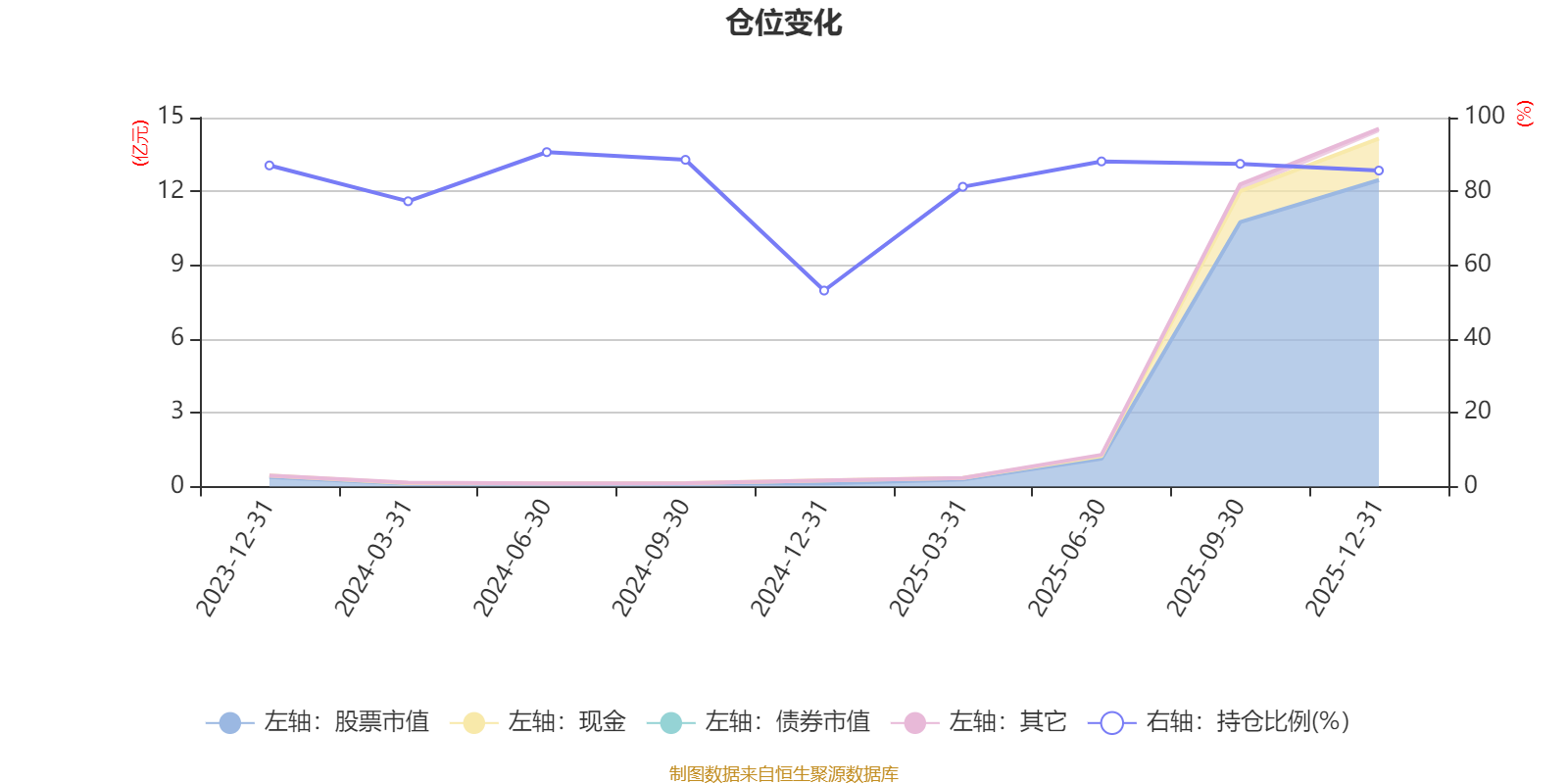 据定期报告数据统计,成立以来平均股票仓位为82.13%,同类平均为84.04%。2024年上半年末基金达到90.64%的最高仓位,2024年末最低,为53.12%。