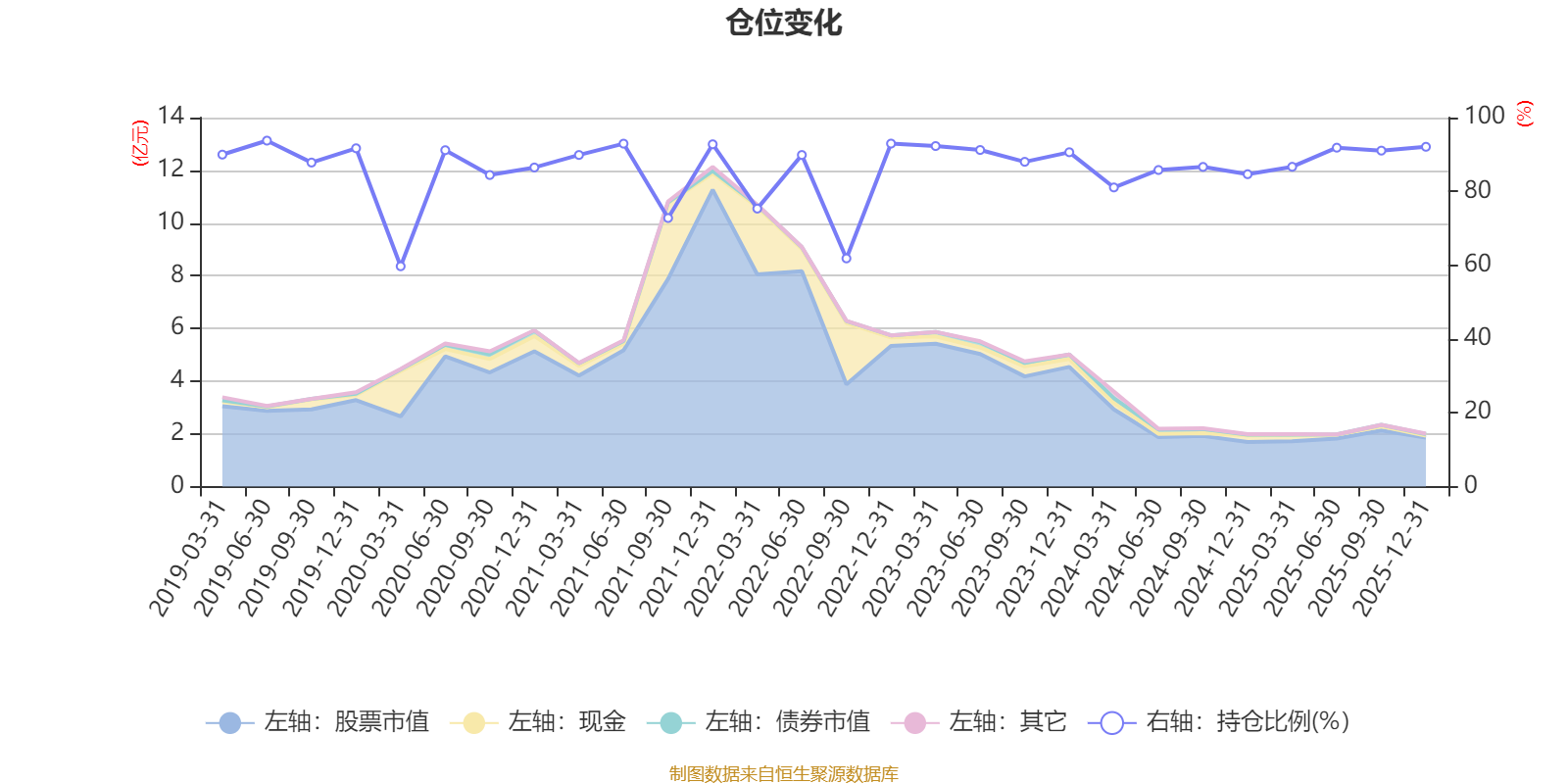 据定期报告数据统计,近三年平均股票仓位为88.5%,同类平均为72.57%。2019年上半年末基金达到93.76%的最高仓位,2020年一季度末最低,为59.71%。