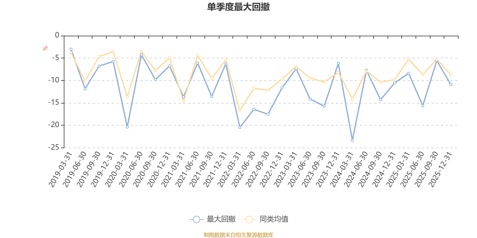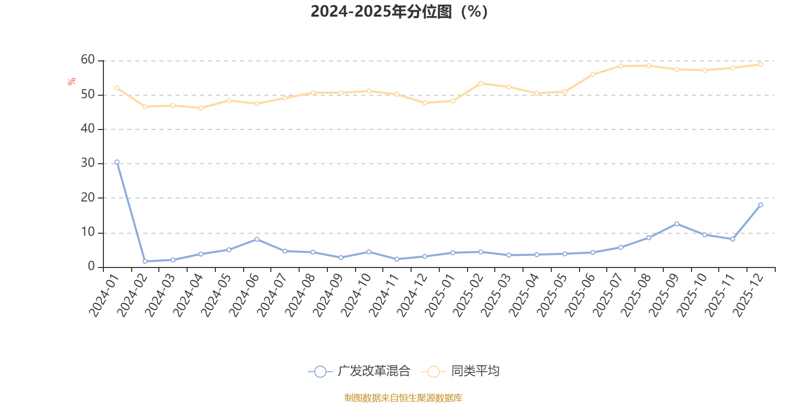 通过所选区间该基金净值增长率分位图,可以观察该基金与同类基金业绩比较情况。图为坐标原点到区间内某时点的净值增长率在同类基金中的分位数。