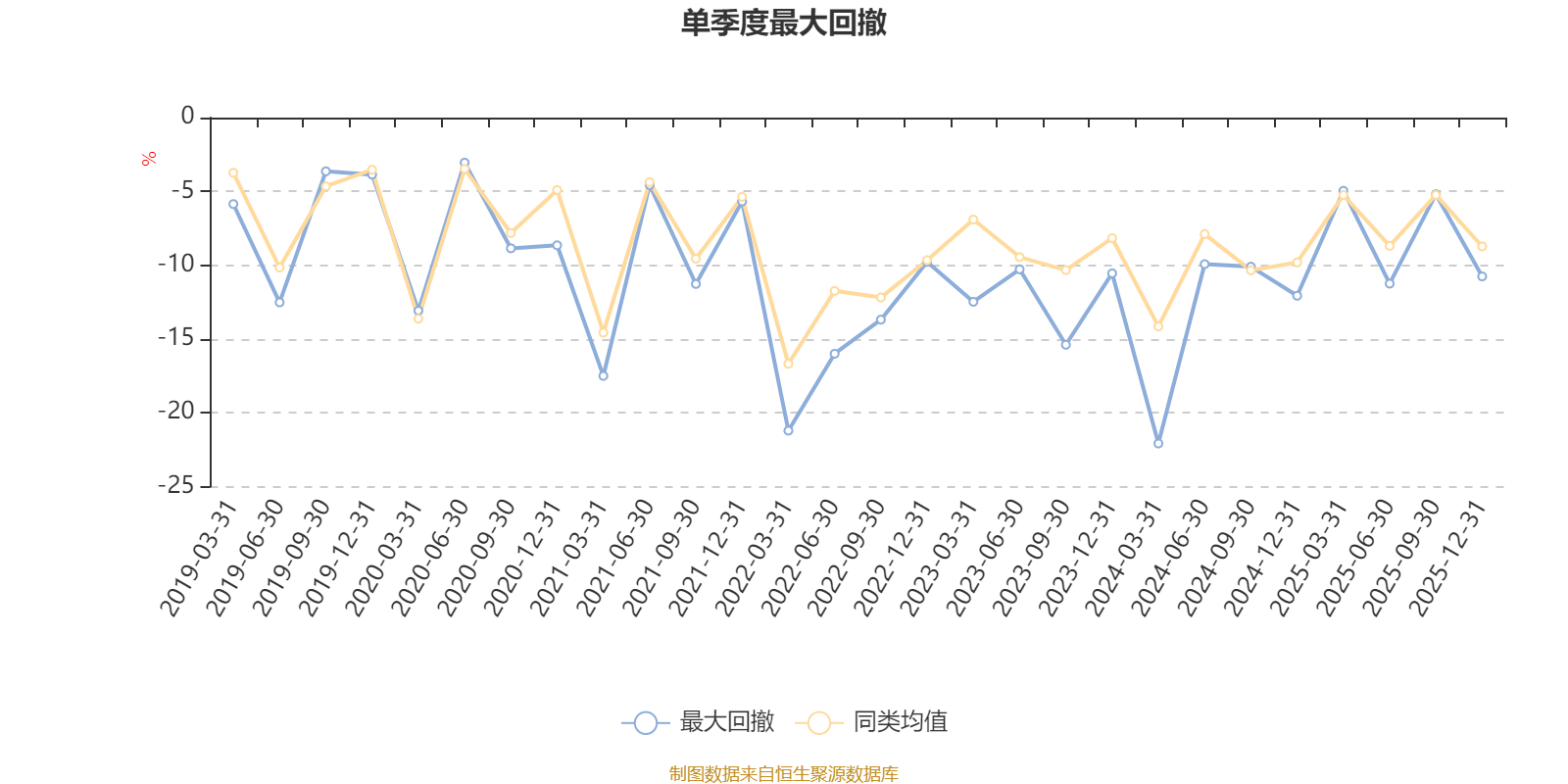 截至1月22日,基金近三年最大回撤为44.54%,同类可比基金排名1071/1263。单季度最大回撤出现在2024年一季度,为22.08%。