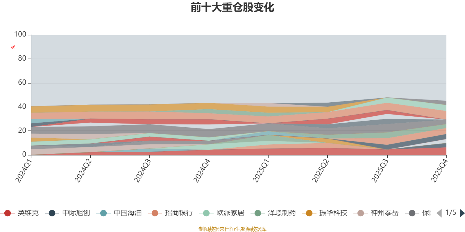 截至2025年四季度末,基金十大重仓股分别是菲利华、英维克、巨人网络、寒武纪、新易盛、欣旺达、中际旭创、赤峰黄金、长盈精密、中金黄金。