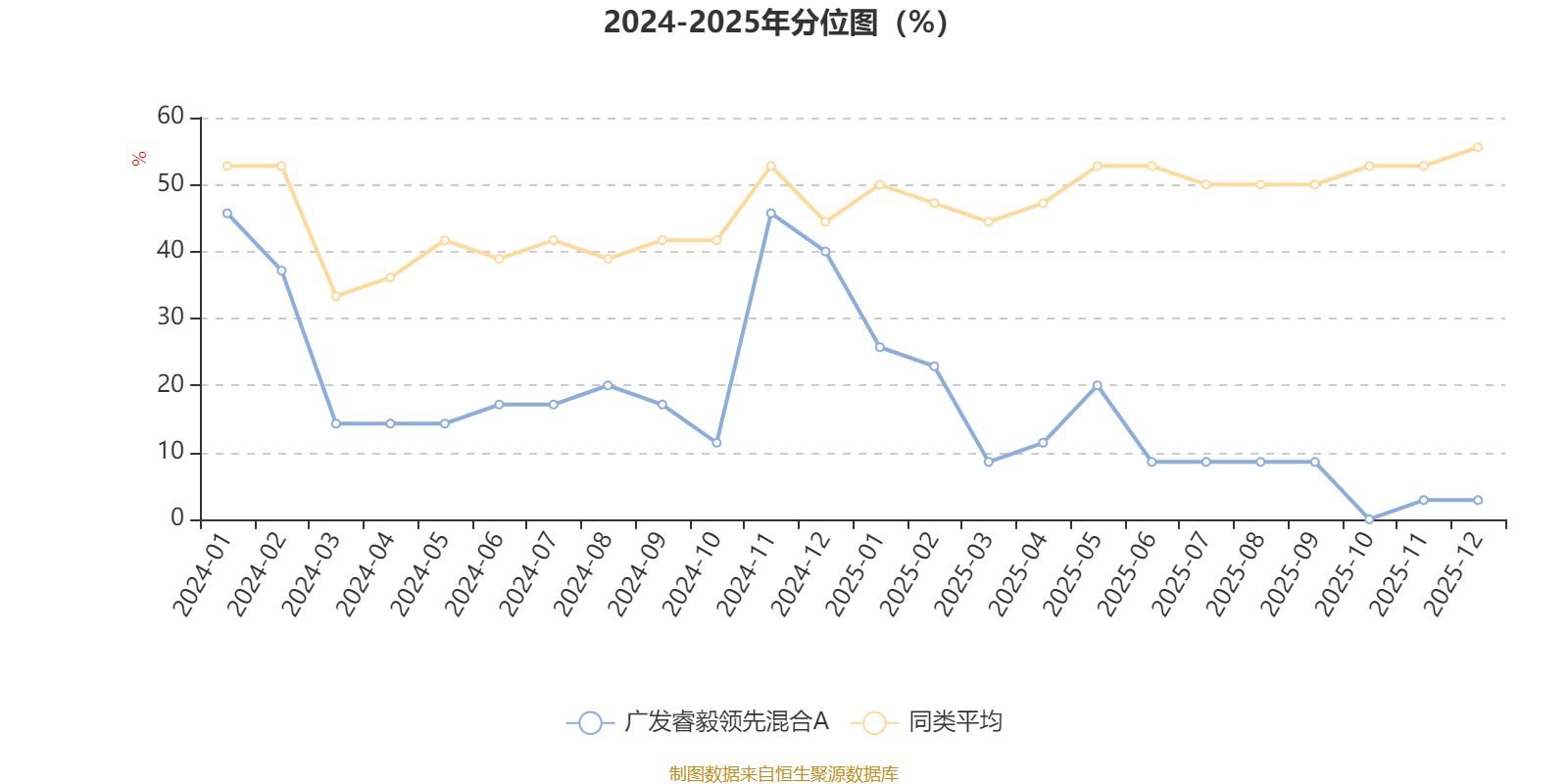 通过所选区间该基金净值增长率分位图,可以观察该基金与同类基金业绩比较情况。图为坐标原点到区间内某时点的净值增长率在同类基金中的分位数。