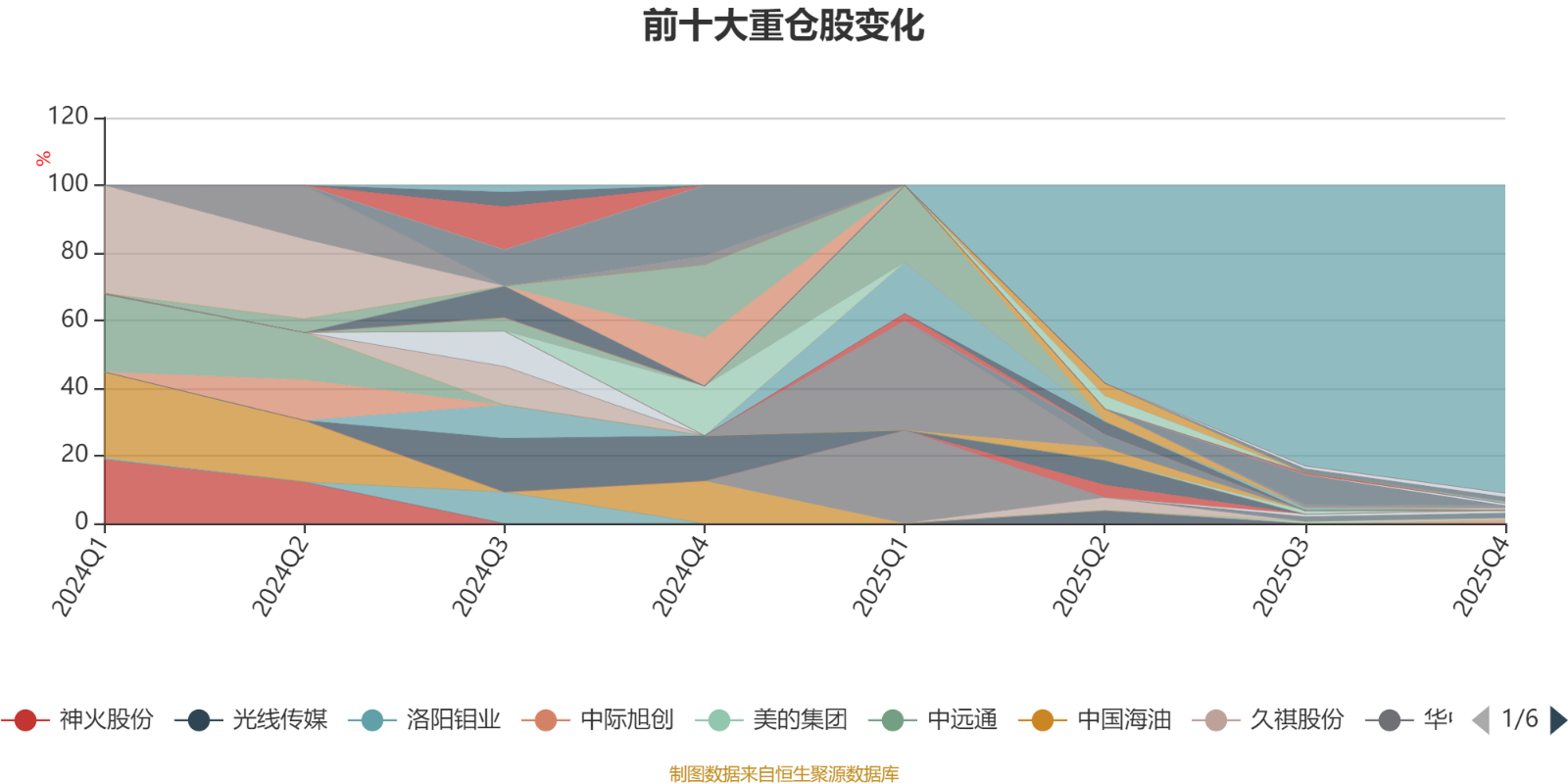 截至2025年四季度末,基金十大重仓股分别是宁德时代、贵州茅台、中国平安、中际旭创、紫金矿业、招商银行、胜宏科技、新易盛、美的集团、兴业银行。