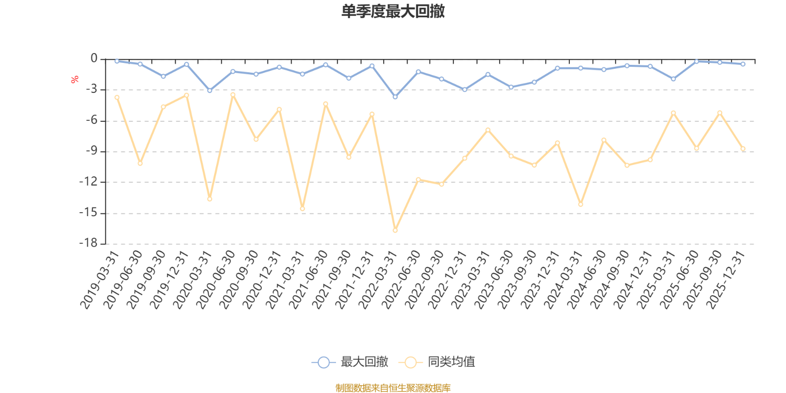 截至1月22日,基金近三年最大回撤为4.42%,同类可比基金排名69/1263。单季度最大回撤出现在2022年一季度,为3.69%。