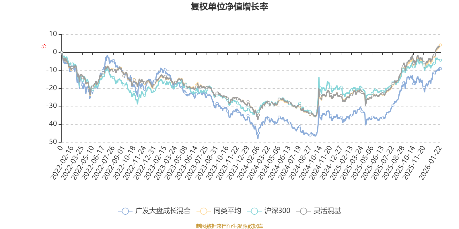 截至1月22日,广发大盘成长混合近三个月复权单位净值增长率为8.89%,位于同类可比基金631/1286;近半年复权单位净值增长率为28.82%,位于同类可比基金462/1286;近一年复权单位净值增长率为41.87%,位于同类可比基金477/1286;近三年复权单位净值增长率为1.87%,位于同类可比基金982/1286。