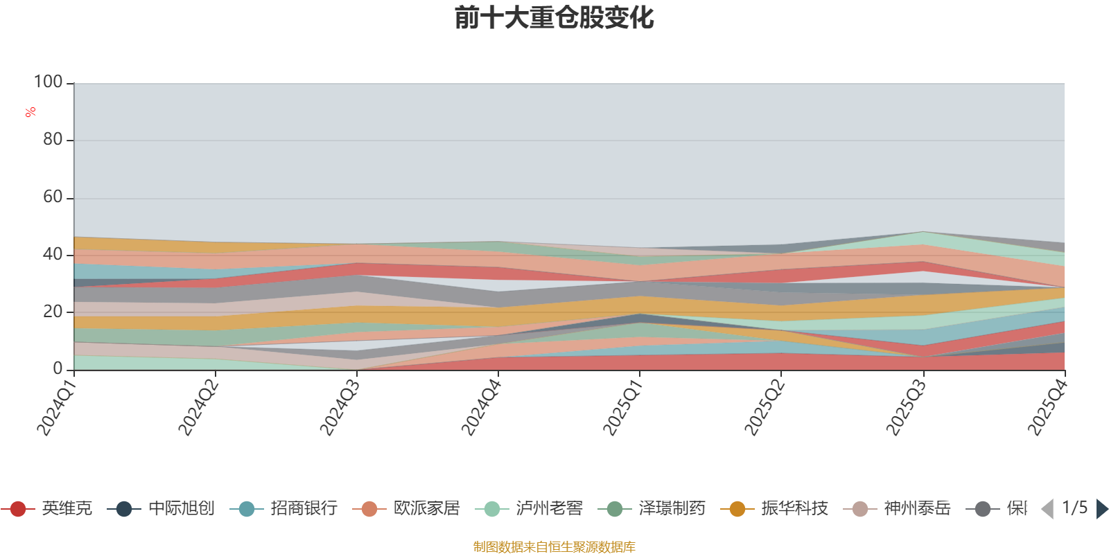 截至2025年四季度末,基金十大重仓股分别是菲利华、英维克、寒武纪、巨人网络、新易盛、欣旺达、中际旭创、赤峰黄金、长盈精密、中金黄金。