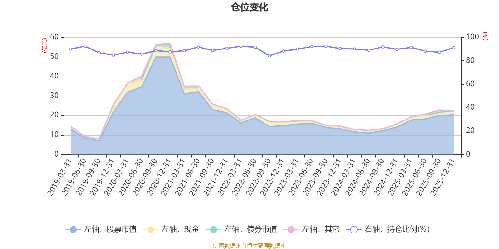 据定期报告数据统计,近三年平均股票仓位为90.3%,同类平均为88.64%。2019年上半年末基金达到92.46%的最高仓位,2022年三季度末最低,为84.23%。