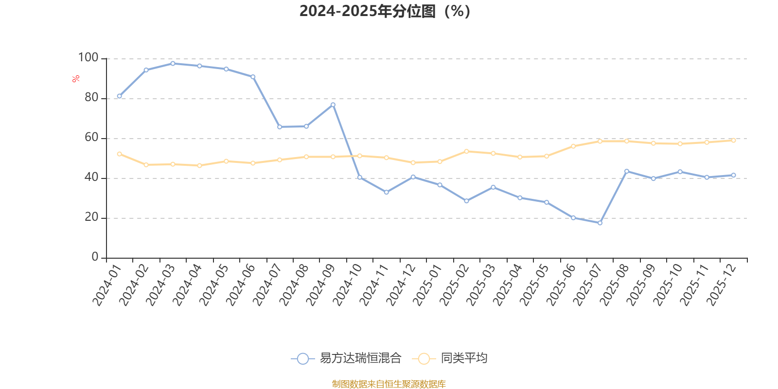 通过所选区间该基金净值增长率分位图,可以观察该基金与同类基金业绩比较情况。图为坐标原点到区间内某时点的净值增长率在同类基金中的分位数。