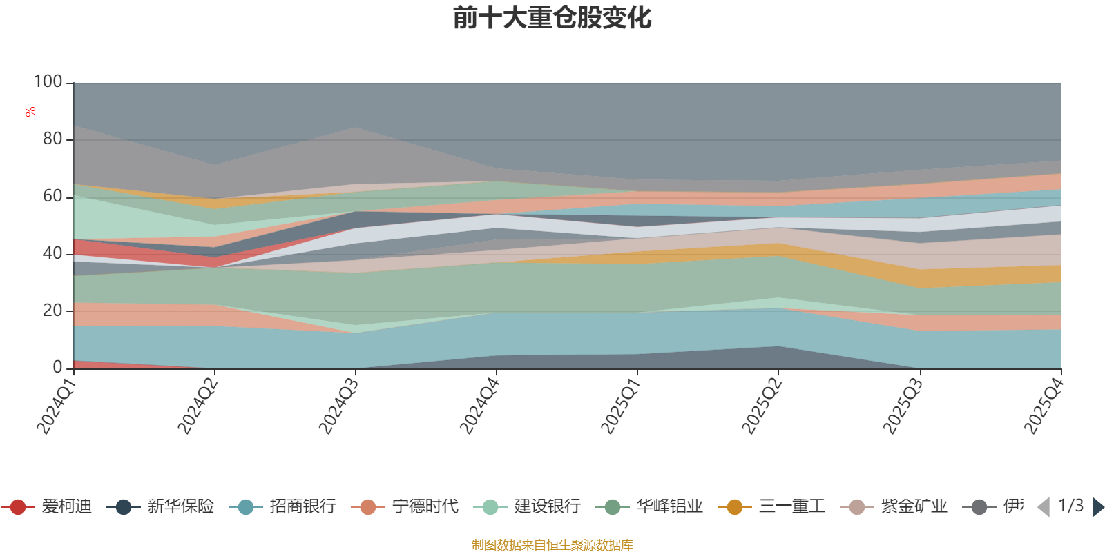该基金持股集中度较高,近2年前十大重仓股集中度长期超过60%。截至2025年四季度末,基金十大重仓股分别是招商银行、华峰铝业、紫金矿业、三一重工、万华化学、阿里巴巴-W、中国银行、宁德时代、星宇股份、恒立液压。