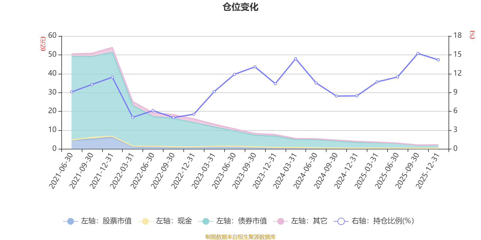 据定期报告数据统计,近三年平均股票仓位为11.49%,同类平均为19.2%。2025年三季度末基金达到15.22%的最高仓位,2022年三季度末最低,为5%。