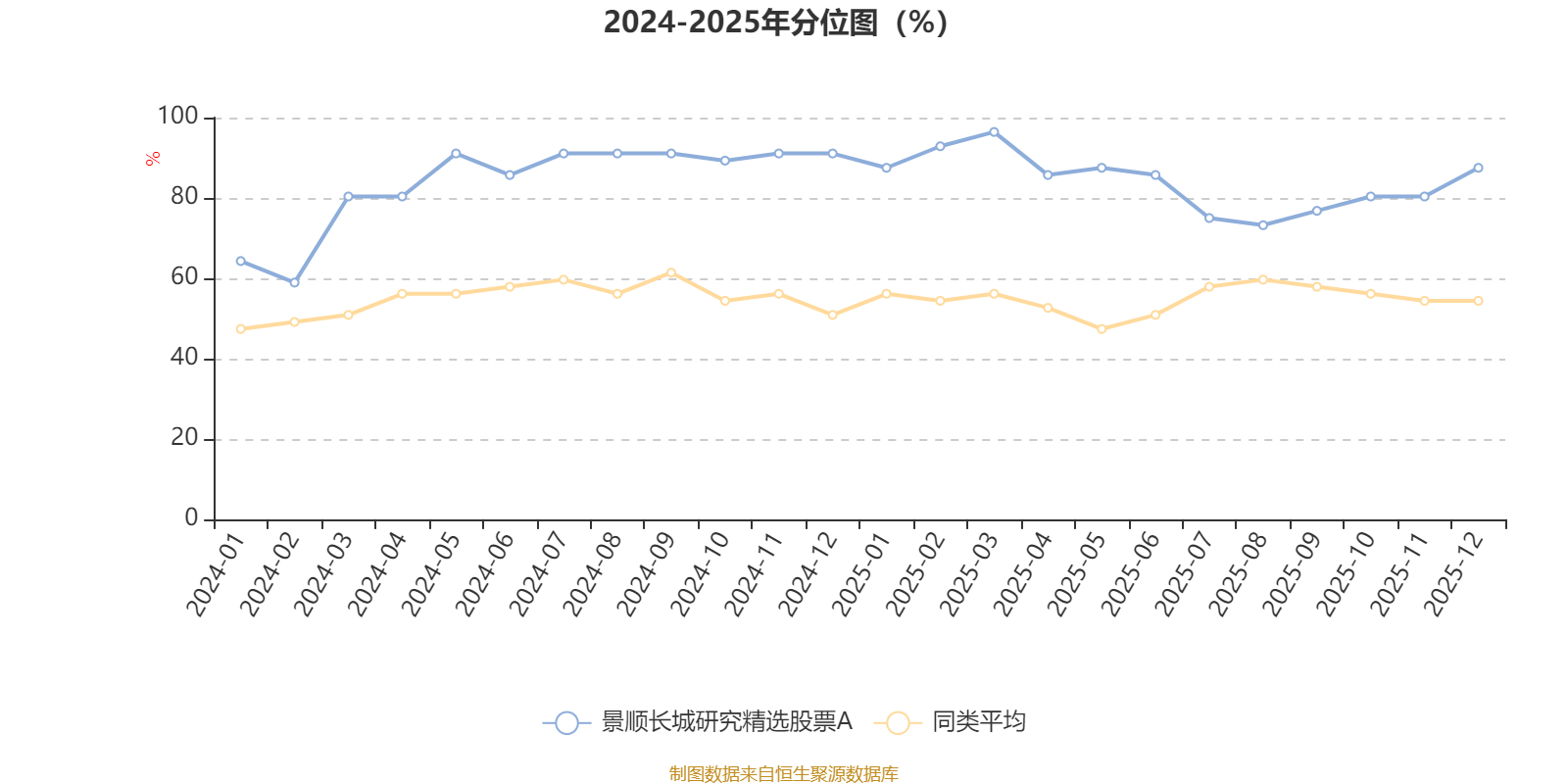 通过所选区间该基金净值增长率分位图,可以观察该基金与同类基金业绩比较情况。图为坐标原点到区间内某时点的净值增长率在同类基金中的分位数。