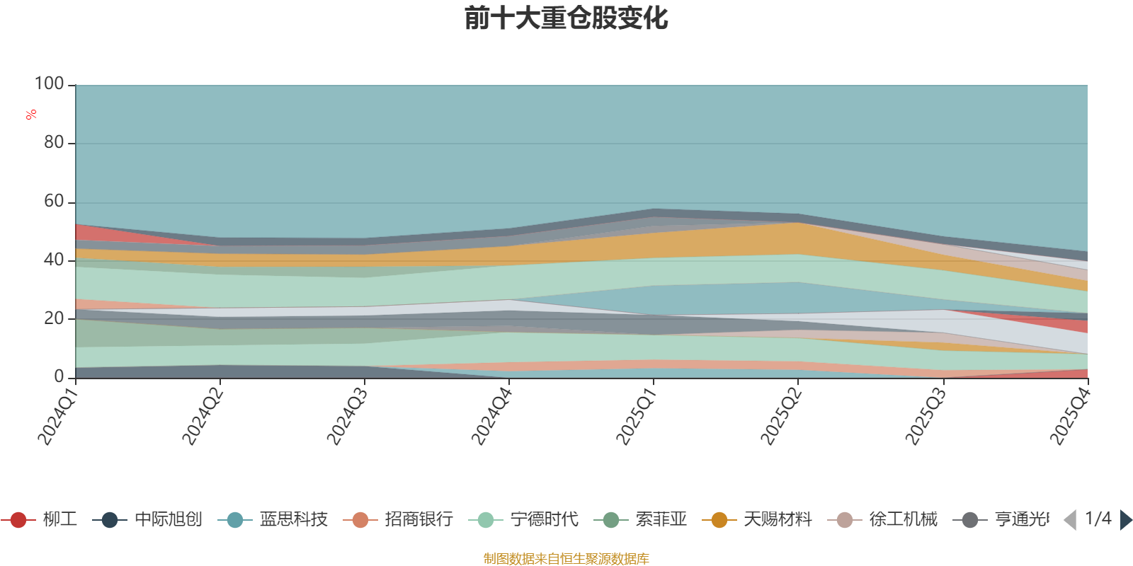 截至2025年四季度末,基金十大重仓股分别是立讯精密、亿纬锂能、宁德时代、天华新能、恩捷股份、东山精密、牧原股份、中国平安、柳工、中国人寿。