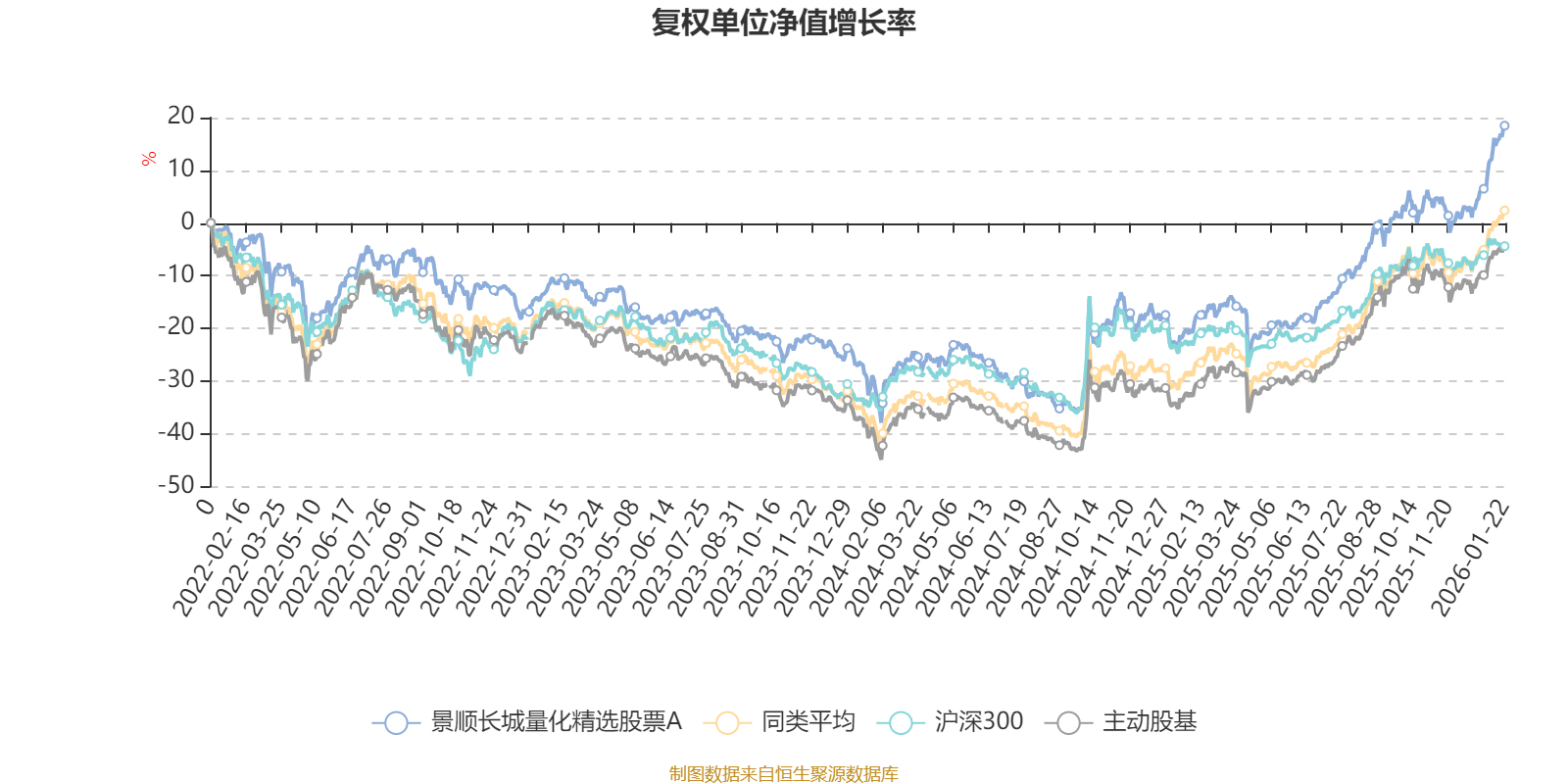 截至1月22日,景顺长城量化精选股票A近三个月复权单位净值增长率为16.19%,位于同类可比基金31/167;近半年复权单位净值增长率为32.45%,位于同类可比基金67/167;近一年复权单位净值增长率为49.42%,位于同类可比基金63/165;近三年复权单位净值增长率为35.31%,位于同类可比基金43/156。