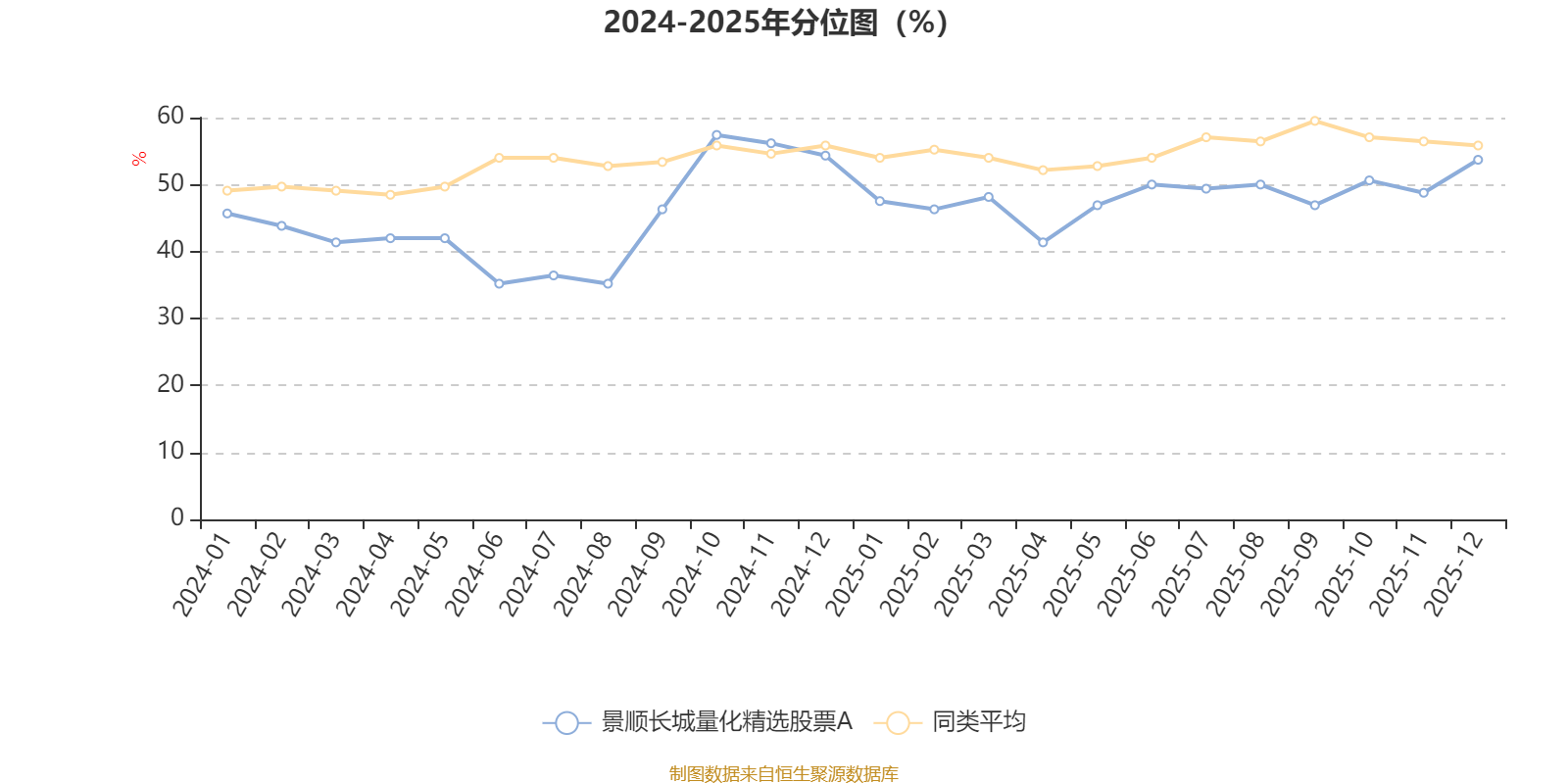 通过所选区间该基金净值增长率分位图,可以观察该基金与同类基金业绩比较情况。图为坐标原点到区间内某时点的净值增长率在同类基金中的分位数。