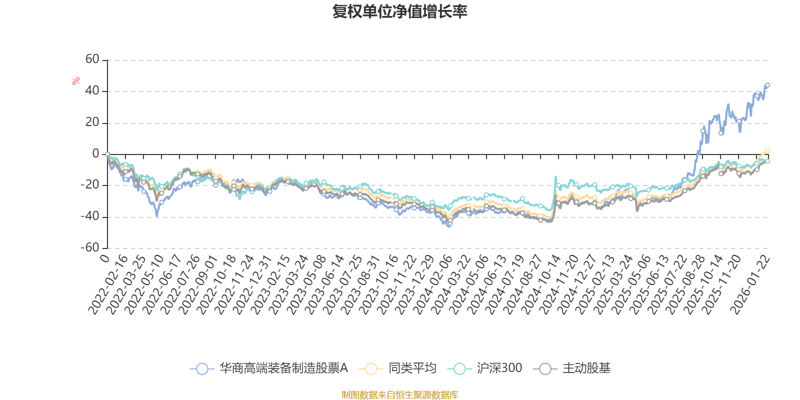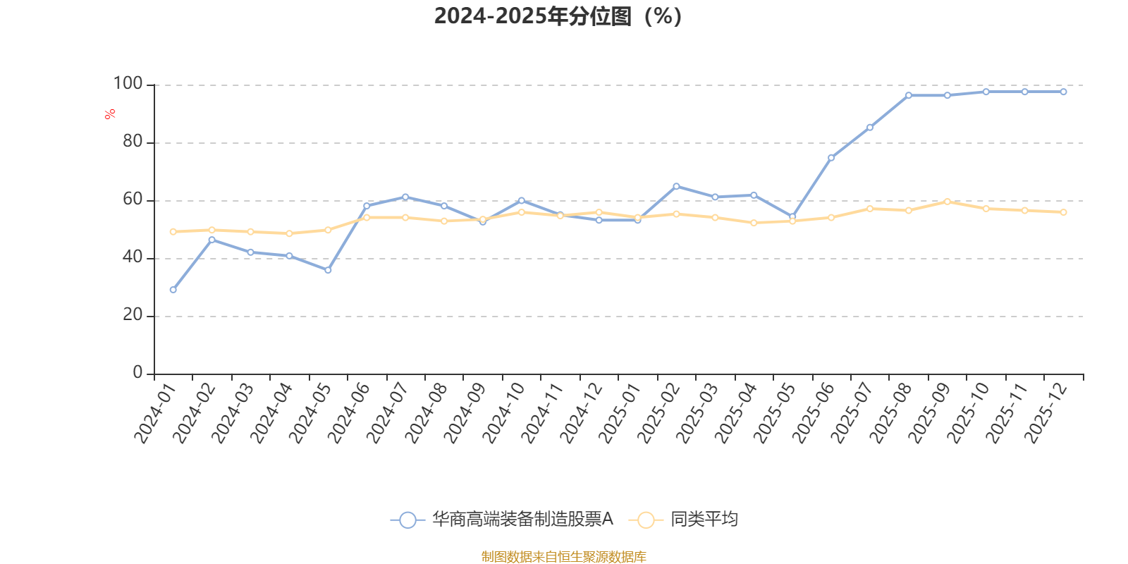 截至1月22日,华商高端装备制造股票A近三个月复权单位净值增长率为19.65%,位于同类可比基金15/167;近半年复权单位净值增长率为71.79%,位于同类可比基金1/167;近一年复权单位净值增长率为105.95%,位于同类可比基金2/165;近三年复权单位净值增长率为74.85%,位于同类可比基金9/156。