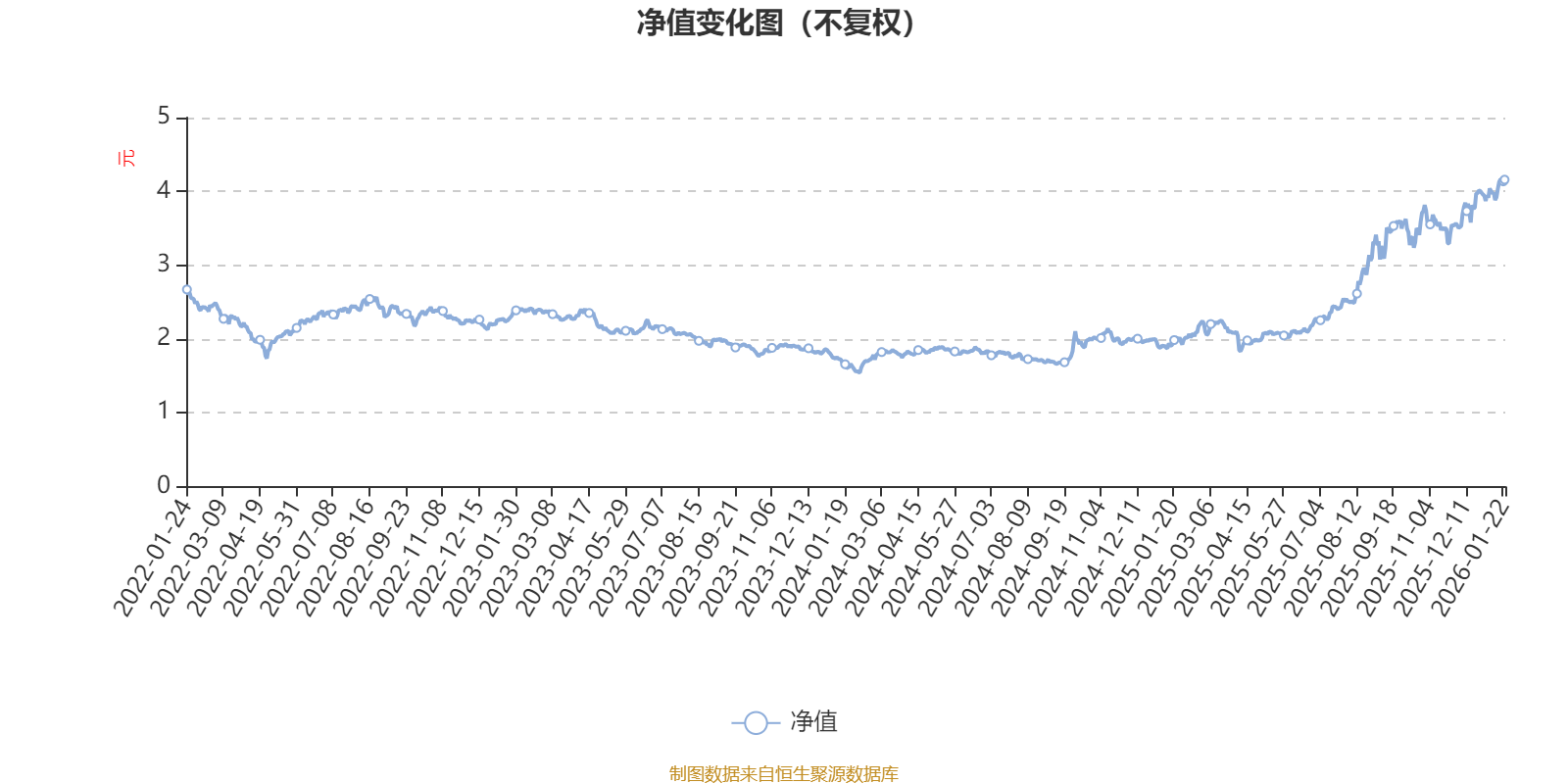 该基金属于标准股票型基金。截至1月22日,单位净值为4.159元。基金经理是陈夏琼和彭雾。