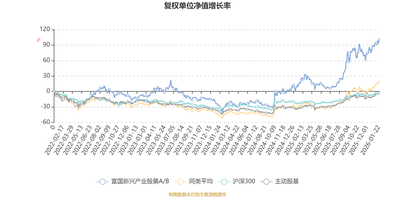 截至1月22日,富国新兴产业股票A/B近三个月复权单位净值增长率为13.15%,位于同类可比基金41/63;近半年复权单位净值增长率为71.20%,位于同类可比基金19/63;近一年复权单位净值增长率为71.20%,位于同类可比基金23/62;近三年复权单位净值增长率为126.55%,位于同类可比基金4/52。