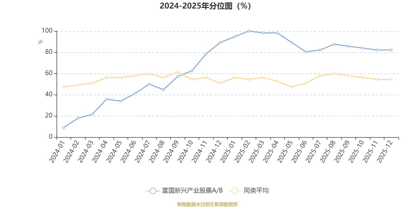 通过所选区间该基金净值增长率分位图,可以观察该基金与同类基金业绩比较情况。图为坐标原点到区间内某时点的净值增长率在同类基金中的分位数。