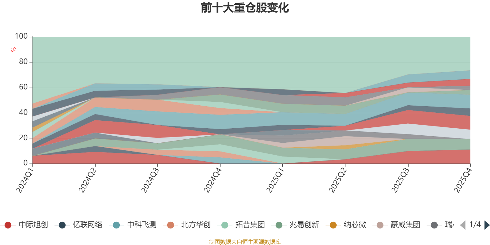 截至2025年四季度末,基金十大重仓股分别是中际旭创、寒武纪、新易盛、兆易创新、沪电股份、深南电路、龙迅股份、东山精密、中芯国际、海光信息。