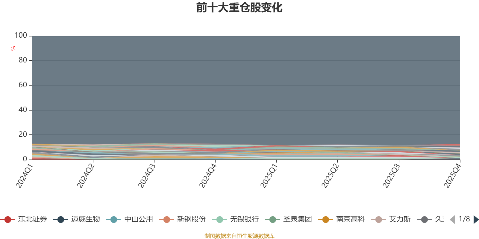 截至2025年四季度末,基金十大重仓股分别是雅化集团、荣昌生物、福晶科技、博瑞医药、万辰集团、鹏辉能源、振华重工、神州信息、迈威生物、宝武镁业。