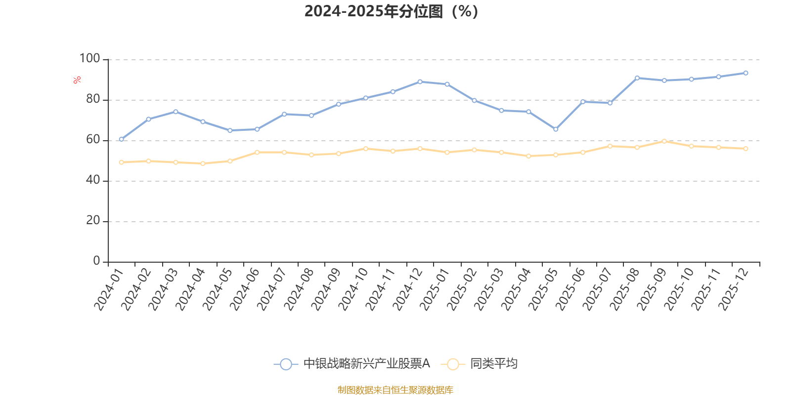 通过所选区间该基金净值增长率分位图,可以观察该基金与同类基金业绩比较情况。图为坐标原点到区间内某时点的净值增长率在同类基金中的分位数。