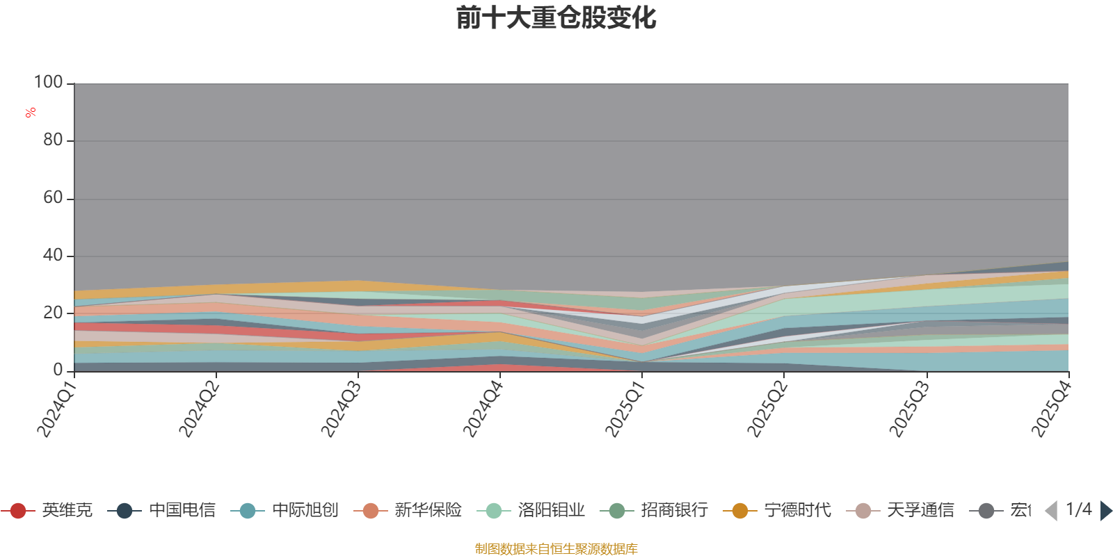 截至2025年四季度末,基金十大重仓股分别是中际旭创、紫金矿业、新易盛、宏创控股、洛阳钼业、中国平安、华新建材、沪电股份、中孚实业、新华保险。