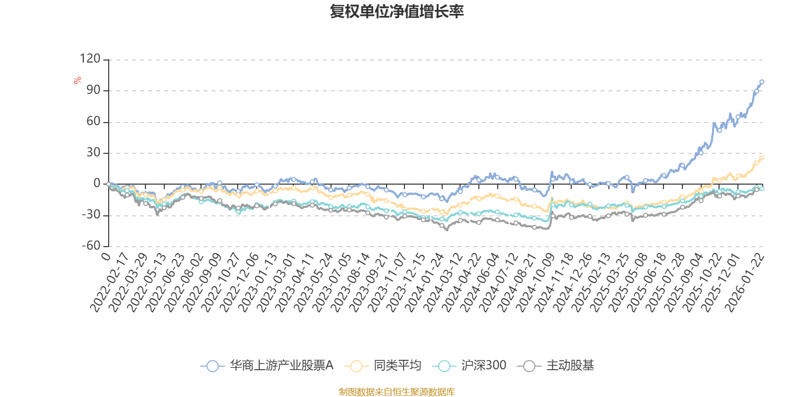 截至1月22日,华商上游产业股票A近三个月复权单位净值增长率为30.77%,位于同类可比基金4/13;近半年复权单位净值增长率为66.36%,位于同类可比基金4/13;近一年复权单位净值增长率为96.09%,位于同类可比基金3/13;近三年复权单位净值增长率为96.34%,位于同类可比基金3/9。