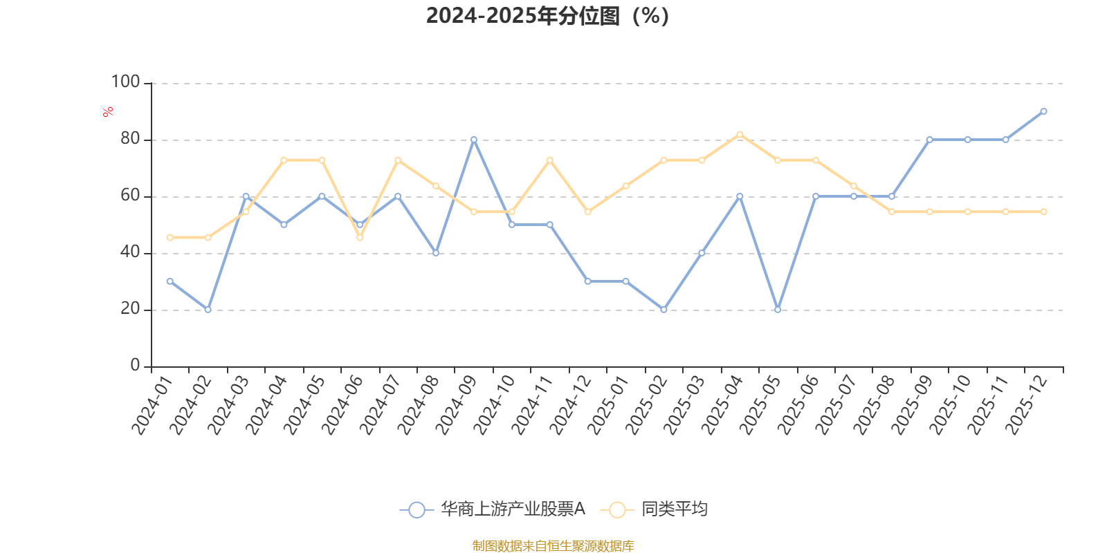 通过所选区间该基金净值增长率分位图,可以观察该基金与同类基金业绩比较情况。图为坐标原点到区间内某时点的净值增长率在同类基金中的分位数。