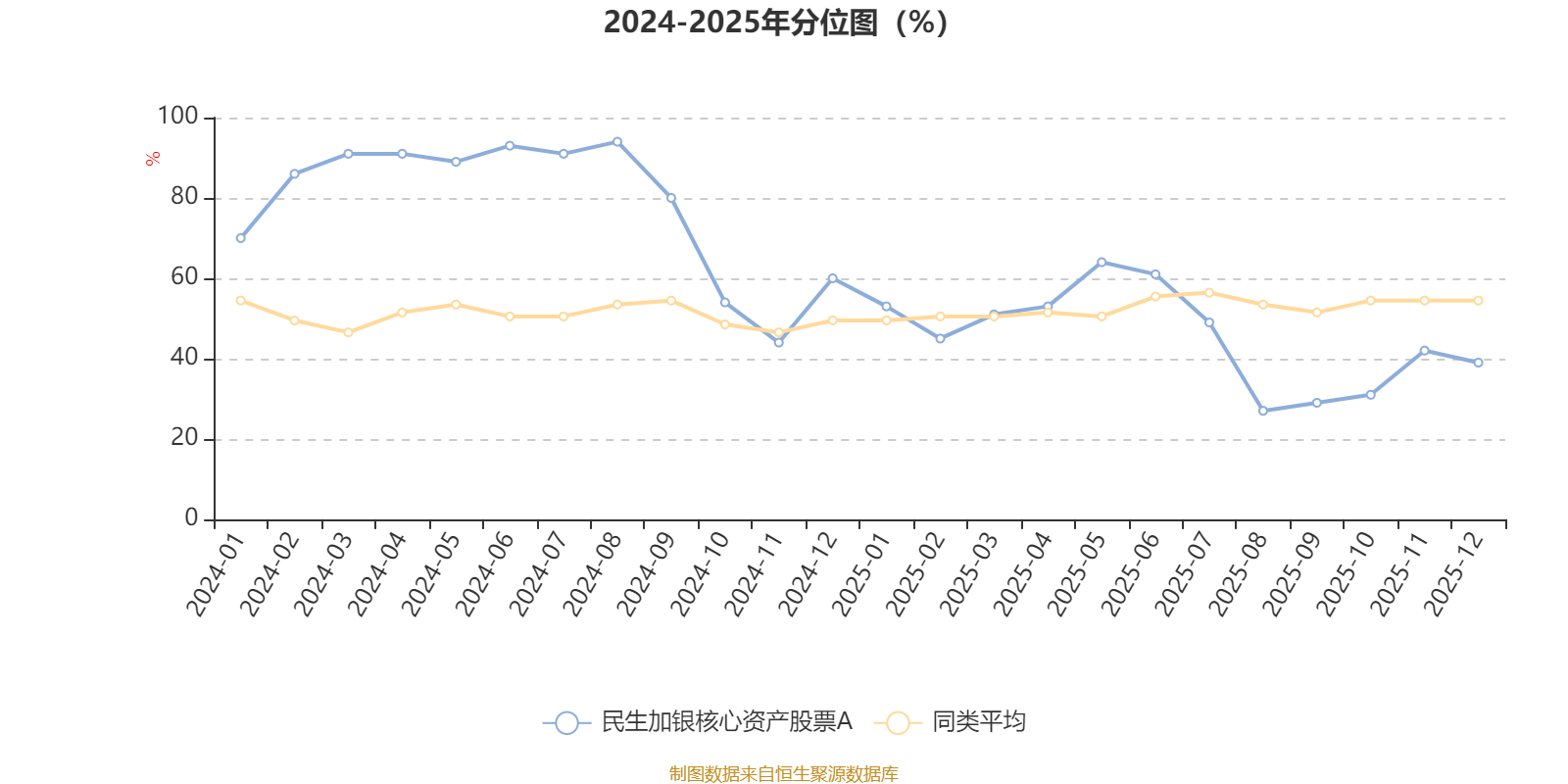 通过所选区间该基金净值增长率分位图,可以观察该基金与同类基金业绩比较情况。图为坐标原点到区间内某时点的净值增长率在同类基金中的分位数。