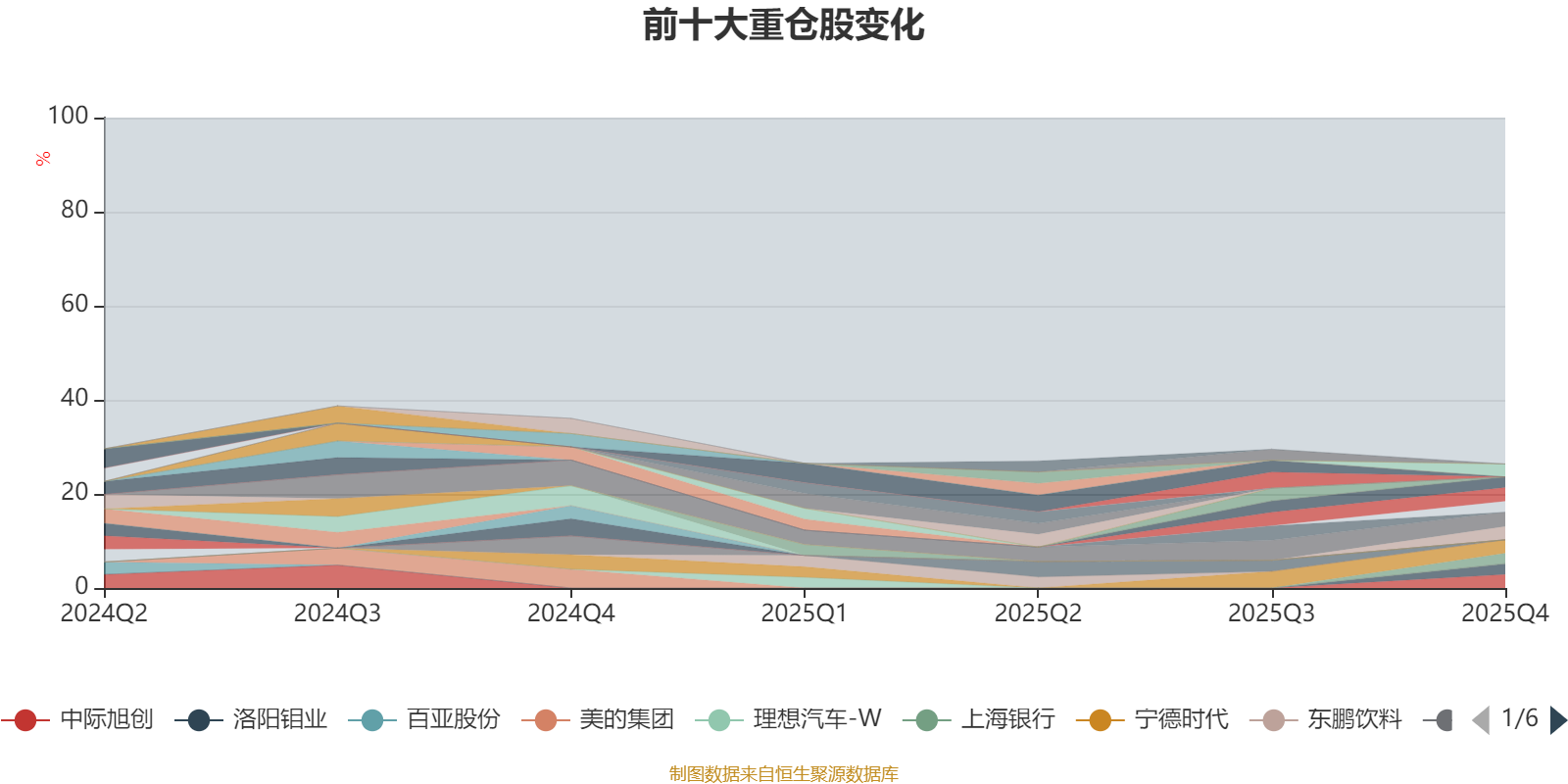 截至2025年四季度末,基金十大重仓股分别是腾讯控股、中广核矿业、宁德时代、中际旭创、兴业银行、中国平安、华新建材、洛阳钼业、立讯精密、上海银行。