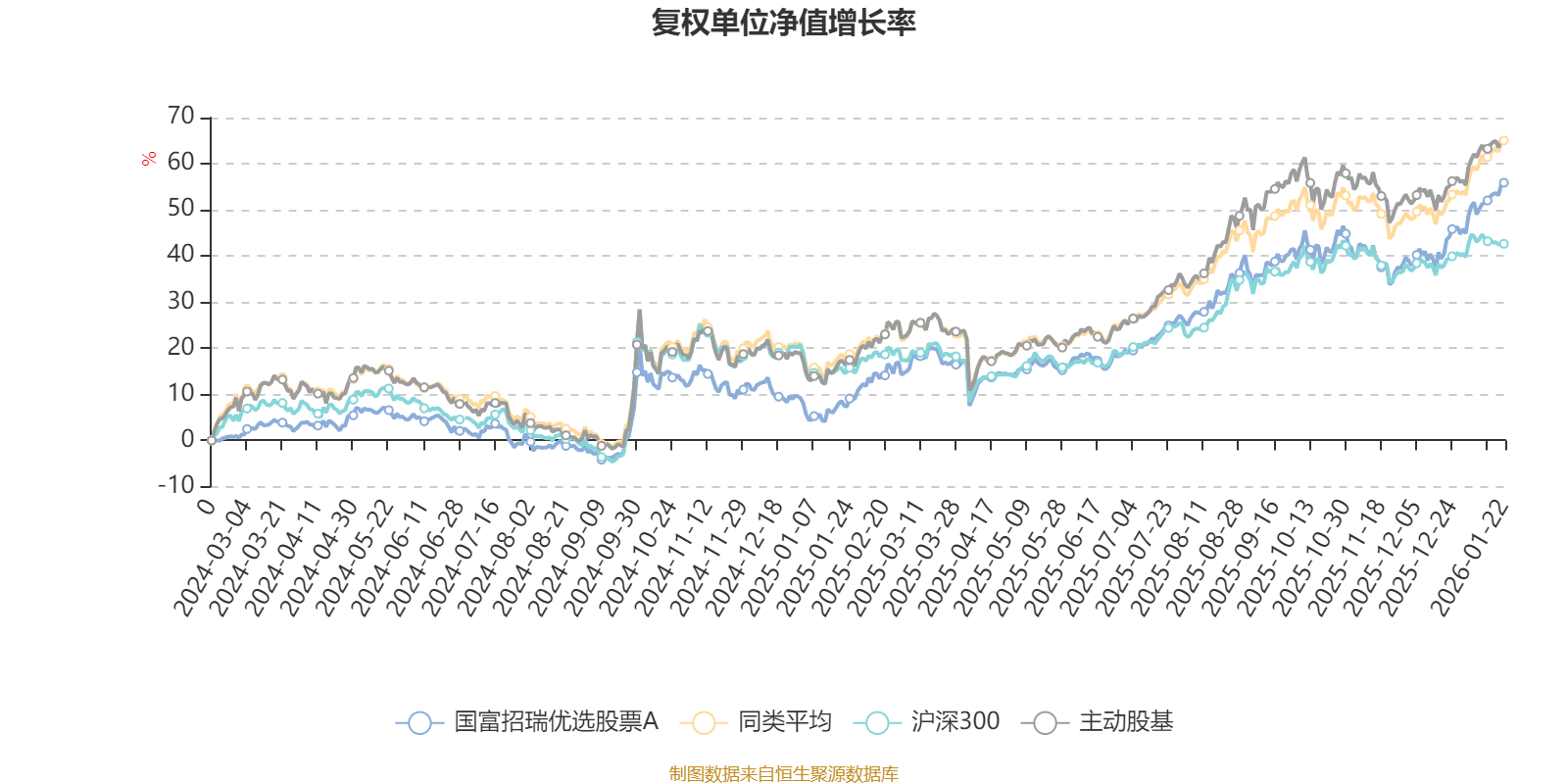 截至1月22日,国富招瑞优选股票A近三个月复权单位净值增长率为10.54%,位于同类可比基金56/121;近半年复权单位净值增长率为25.00%,位于同类可比基金60/121;近一年复权单位净值增长率为44.94%,位于同类可比基金48/119。