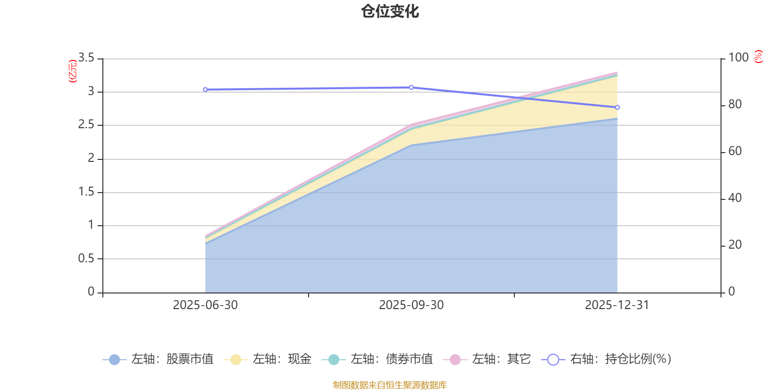 据定期报告数据统计,成立以来平均股票仓位为84.49%,同类平均为87.73%。2025年三季度末基金达到87.63%的最高仓位,2025年末最低,为79.12%。