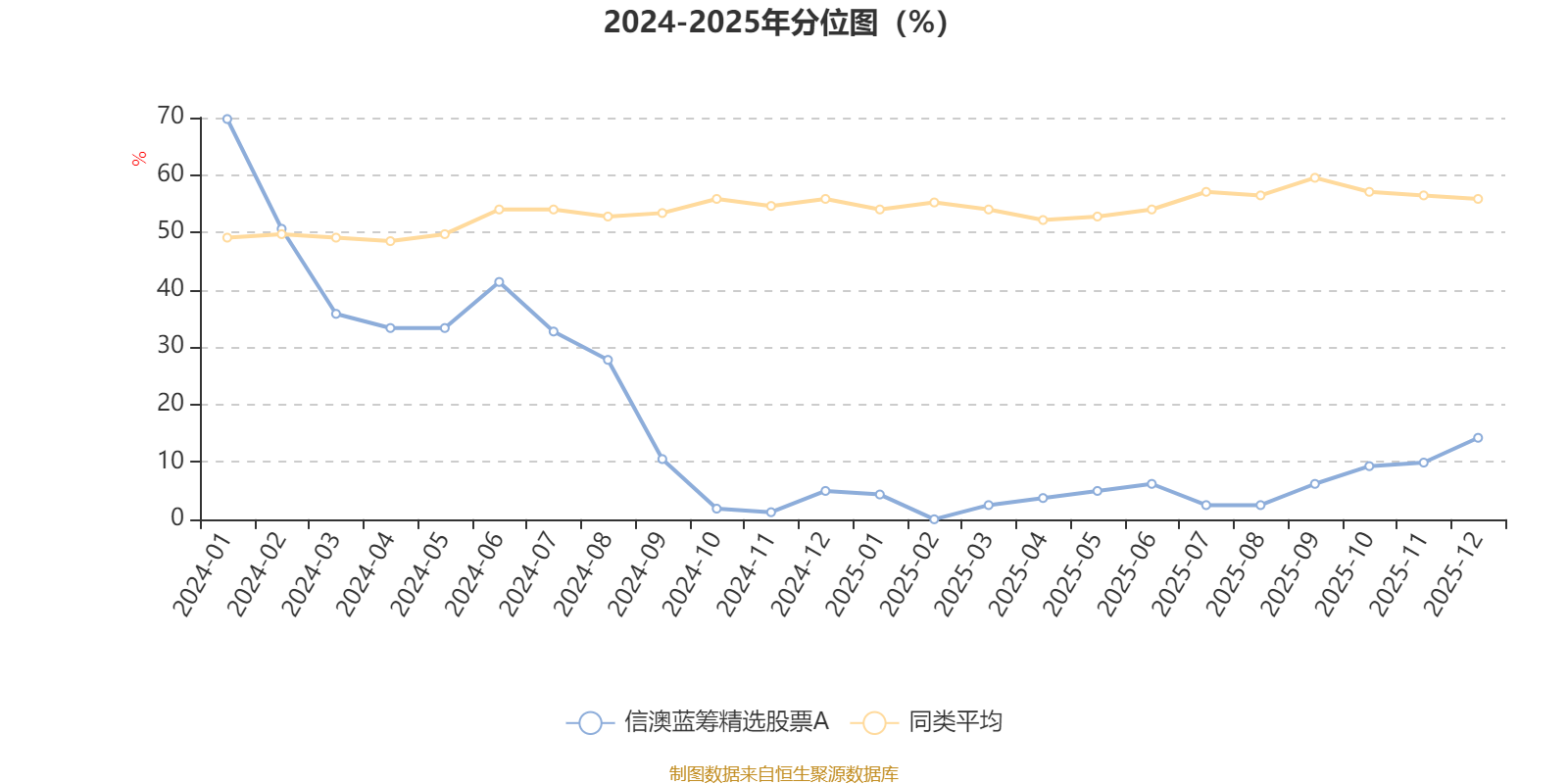通过所选区间该基金净值增长率分位图,可以观察该基金与同类基金业绩比较情况。图为坐标原点到区间内某时点的净值增长率在同类基金中的分位数。