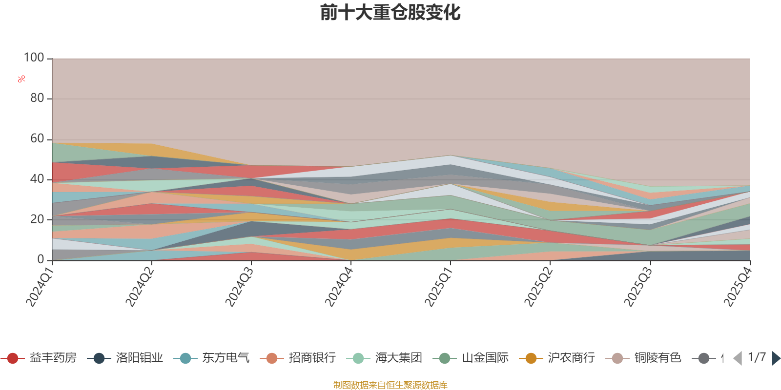 截至2025年四季度末,基金十大重仓股分别是紫金矿业、洛阳钼业、云铝股份、藏格矿业、江苏银行、中孚实业、中国太保、中金黄金、天山铝业、交通银行。