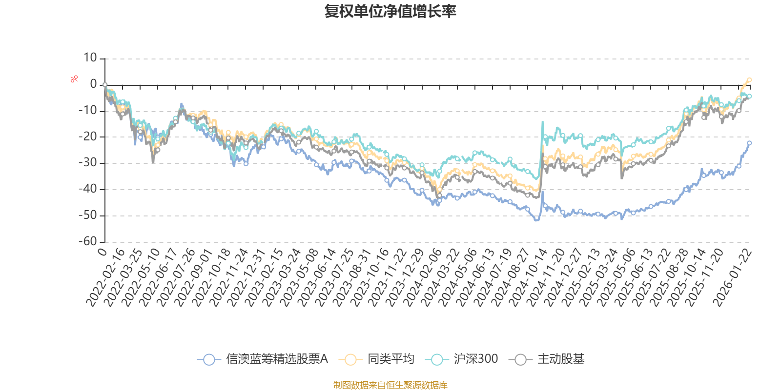 截至1月22日,信澳蓝筹精选股票A近三个月复权单位净值增长率为19.01%,位于同类可比基金18/167;近半年复权单位净值增长率为40.11%,位于同类可比基金38/167;近一年复权单位净值增长率为56.09%,位于同类可比基金40/165;近三年复权单位净值增长率为-3.23%,位于同类可比基金130/156。